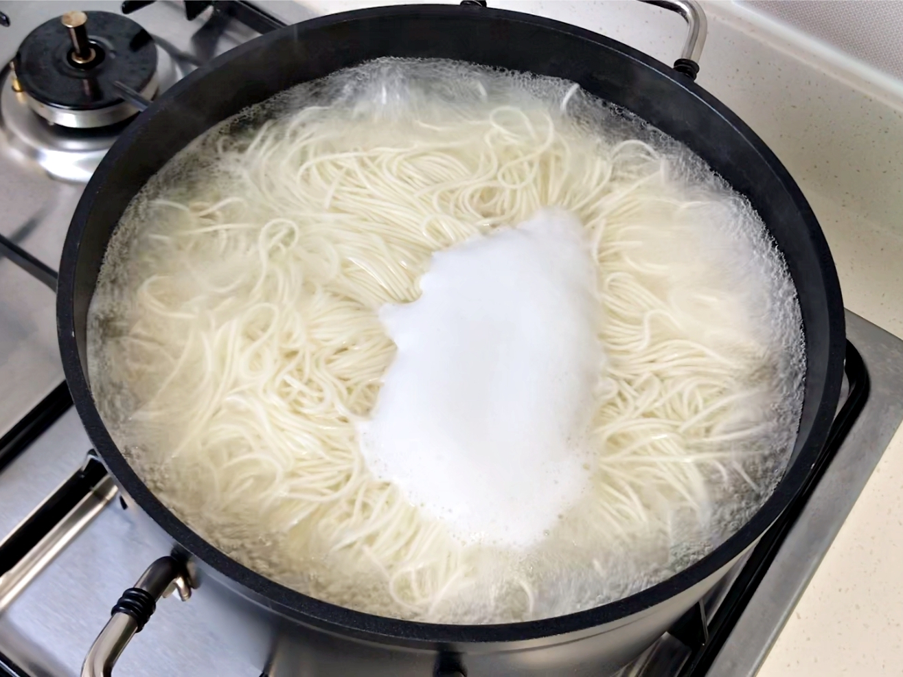 이 과정을 충분히 반복해야 소면에서 밀가루 풋내가 안나요.