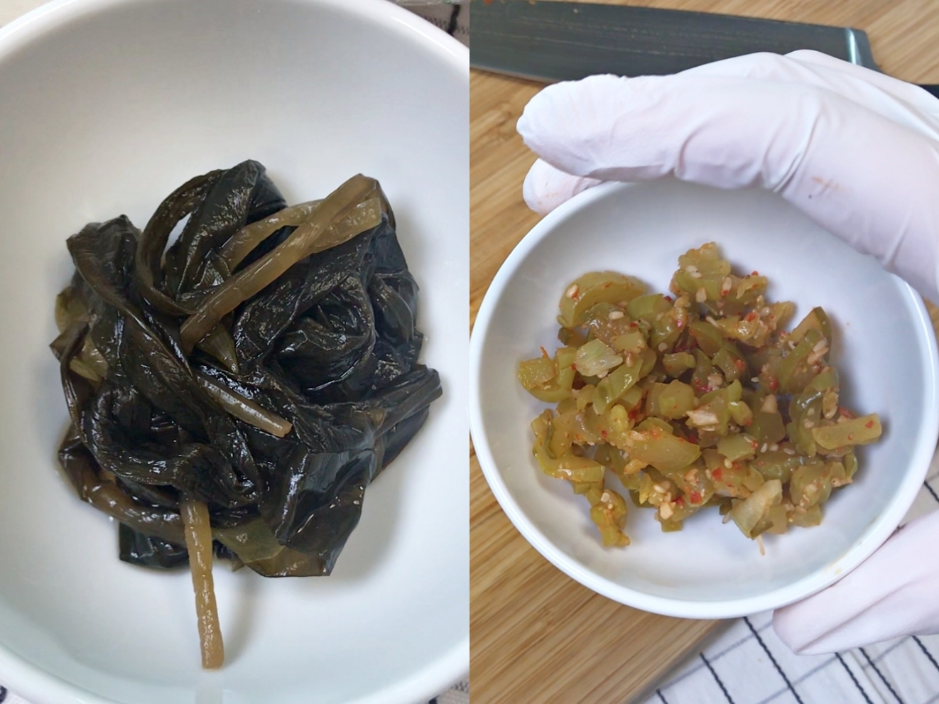 명이나물과 오이지는 잘게 다지기만 해도 돼요.