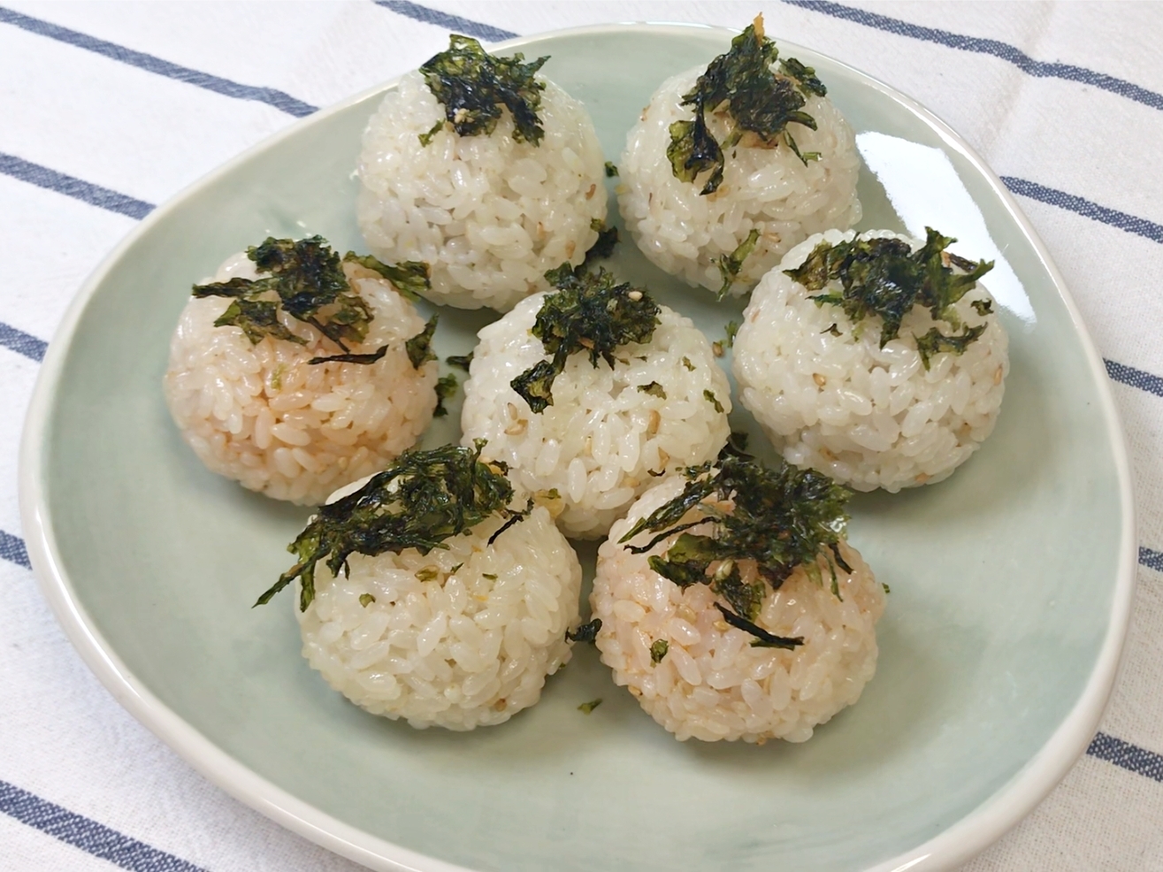 한입에 쏙- 5가지 맛 주먹밥이 완성됐어요.
