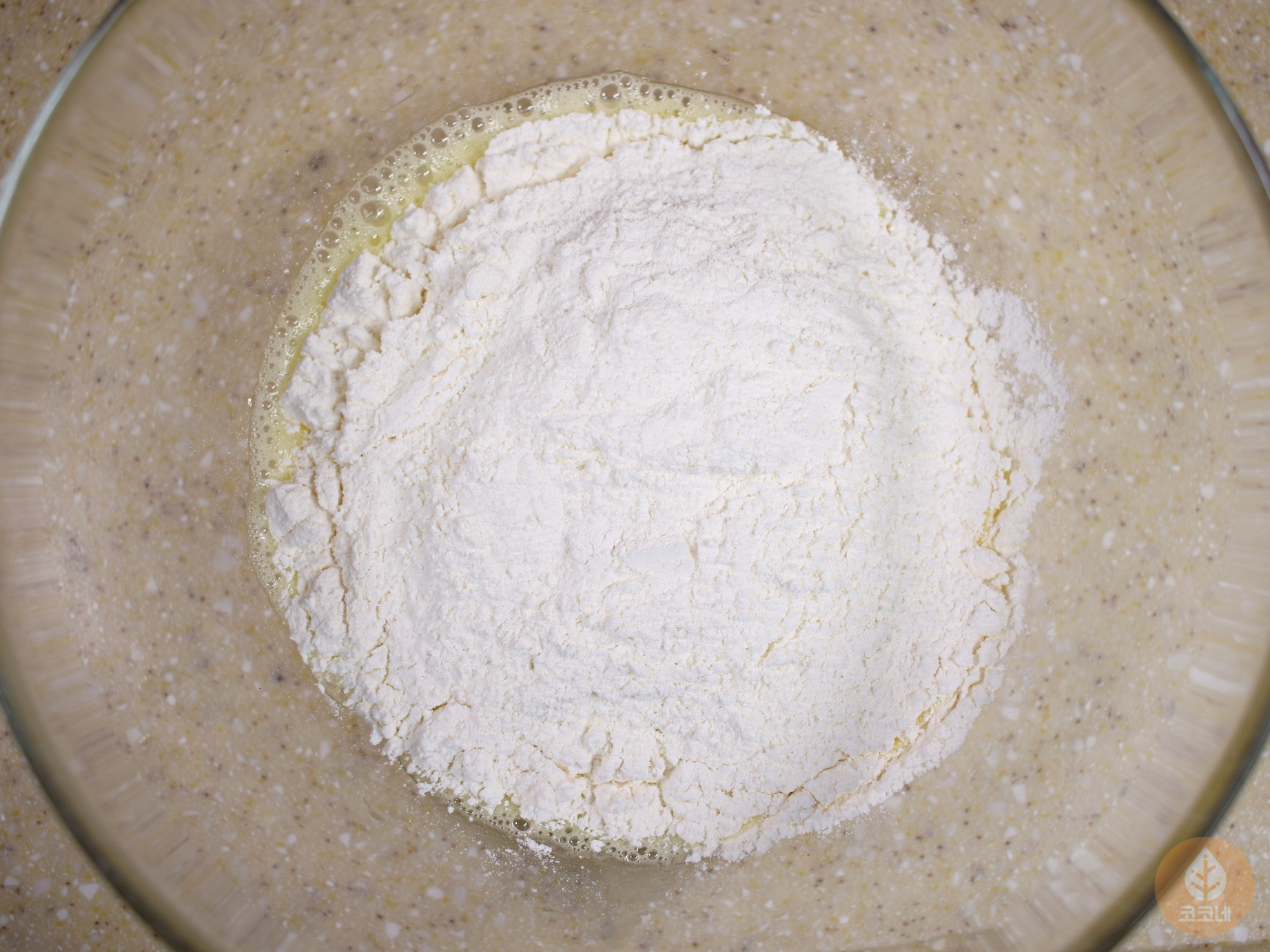작게 썬 바나나를 반죽에 넣고 골고루 섞은 다음
