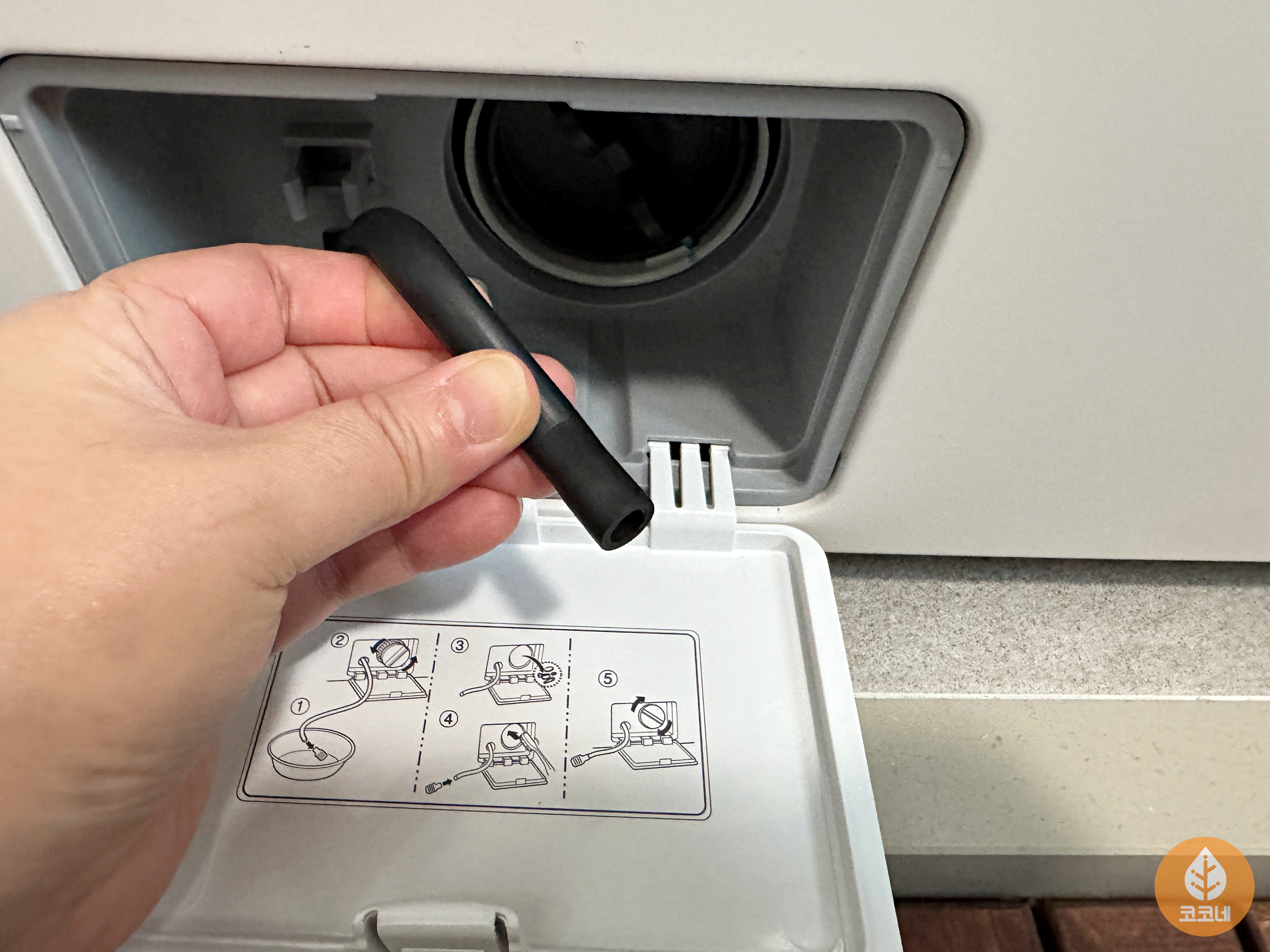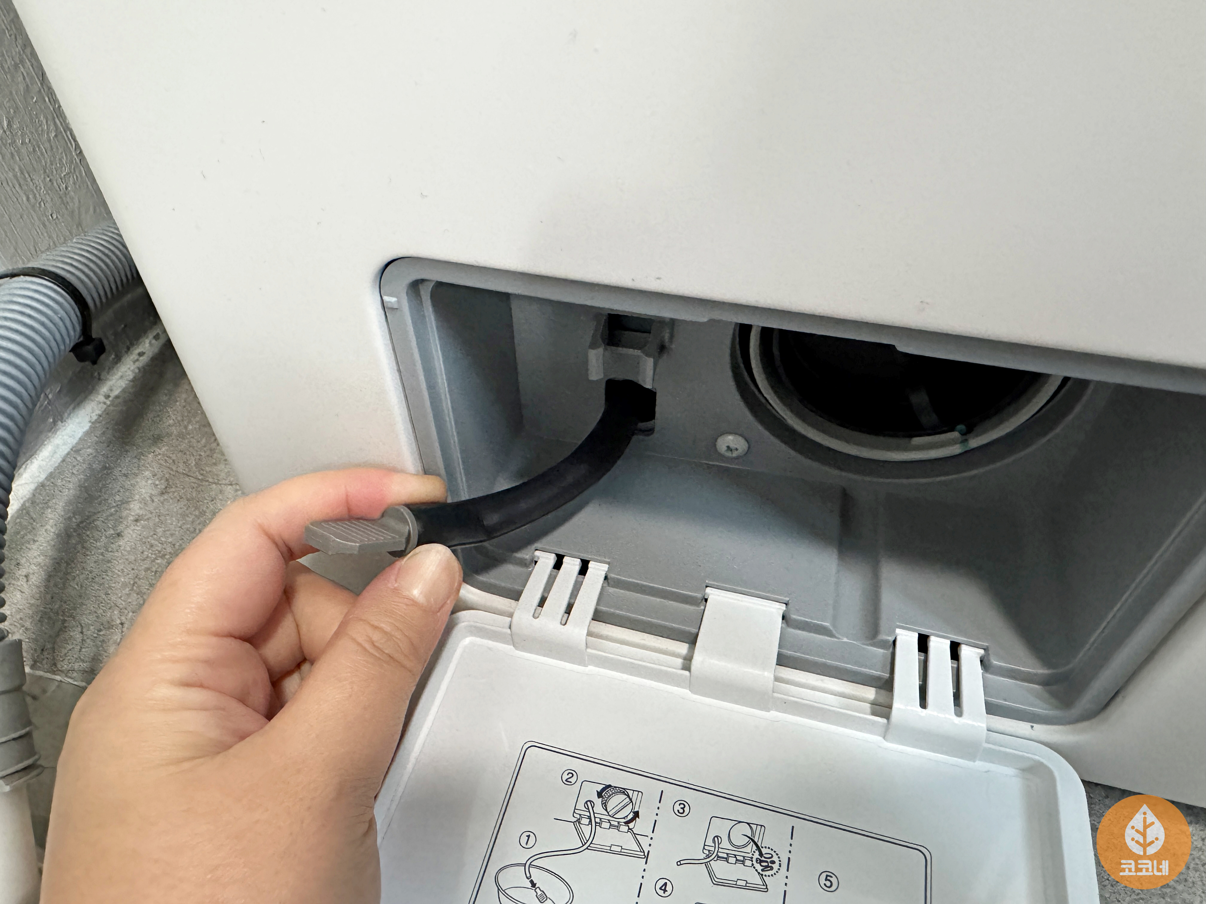 세탁기 하단의 네모박스를 열면