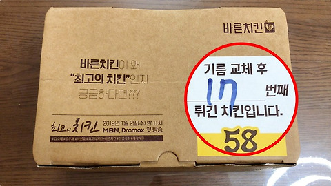 몇 번째 튀긴 치킨인지 알 수 있다고? ‘바른치킨’ 솔직후기 (2) | 2019.01.16 |
