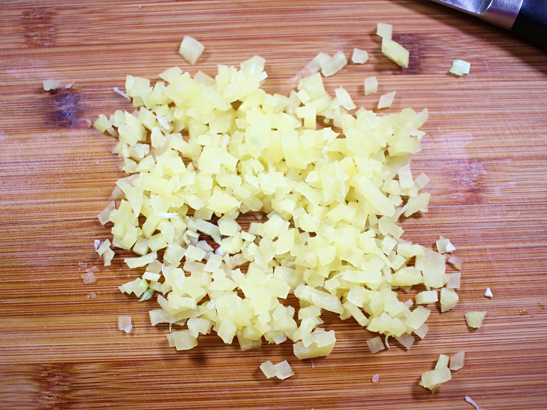 여기에 잘게 썬 단무지를 넣고