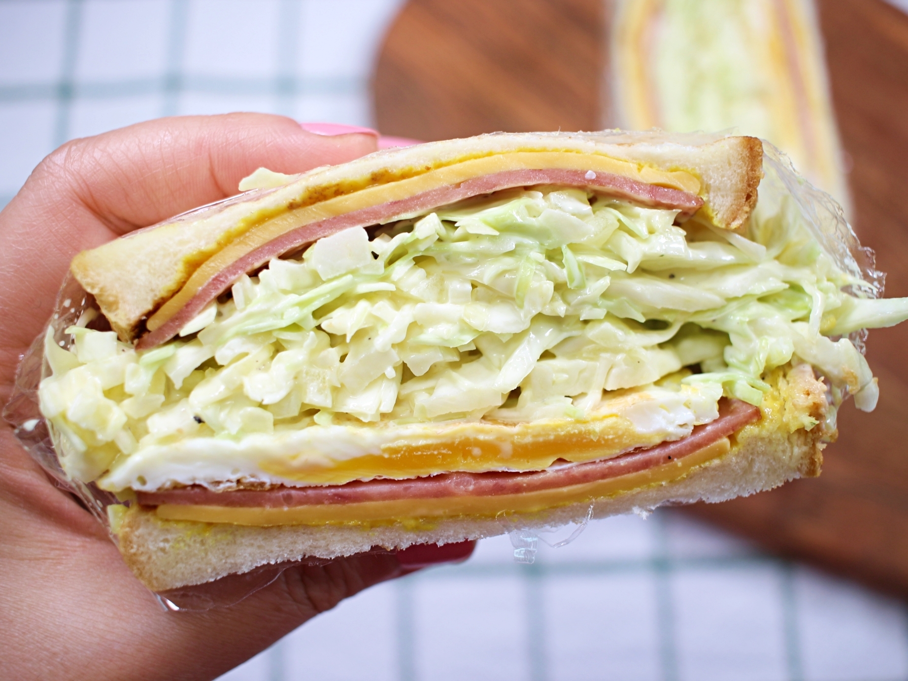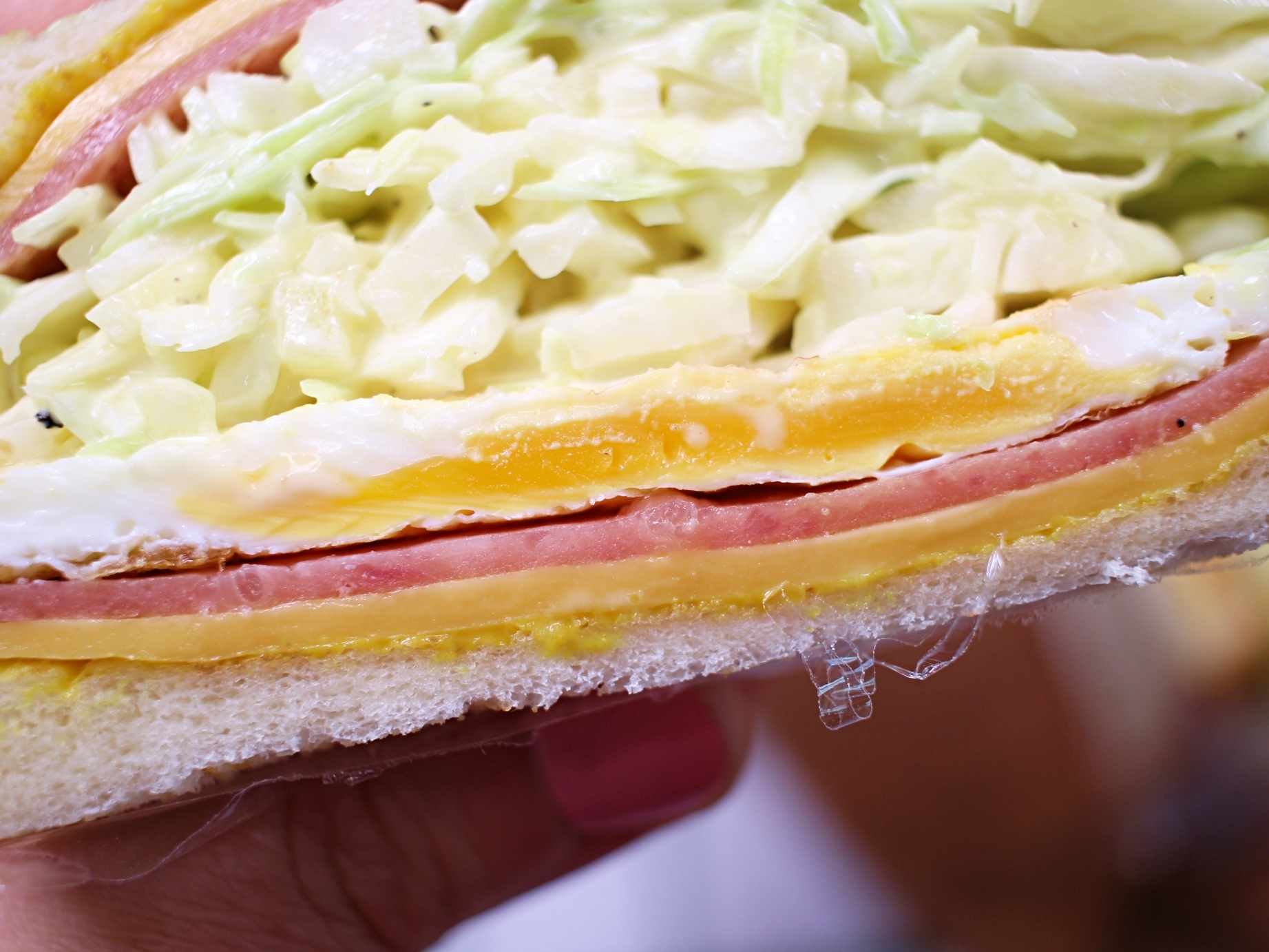 이 샌드위치는 양배추 샐러드가 킥! 이라
