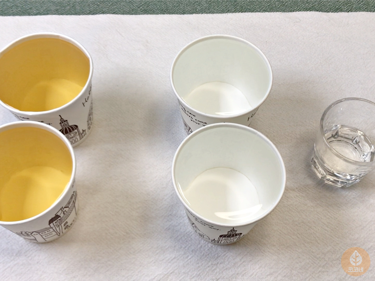 종이컵으로 식초2컵, 물2컵,