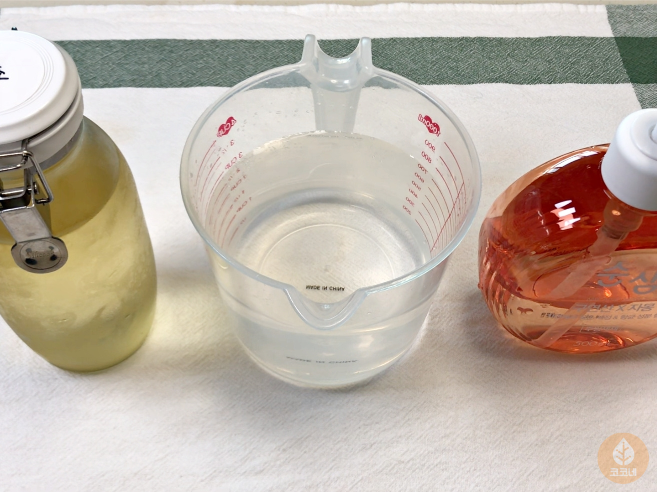 지금 필요한건 식초, 물, 주방세제에요.