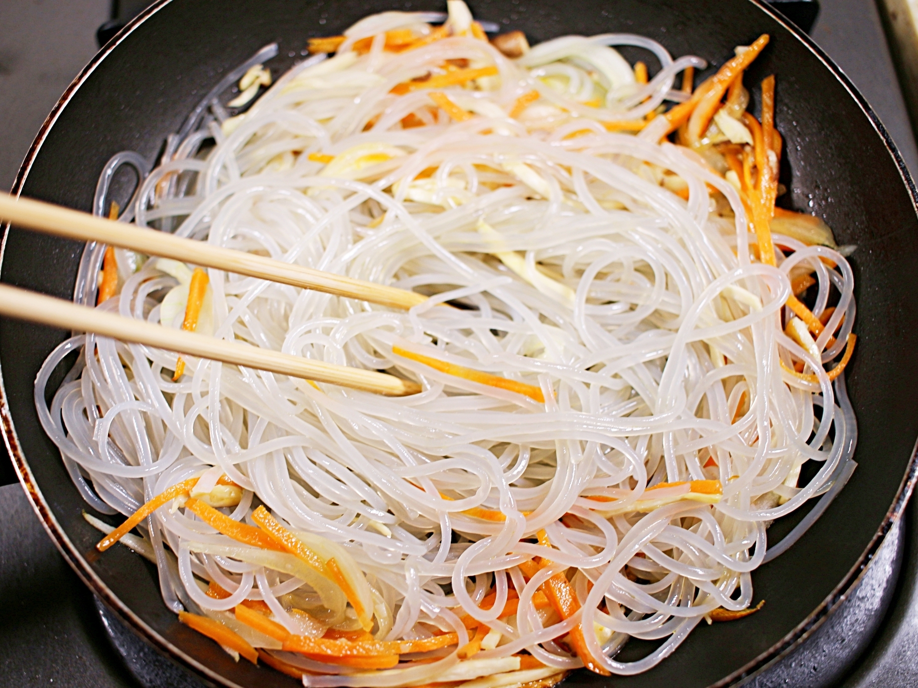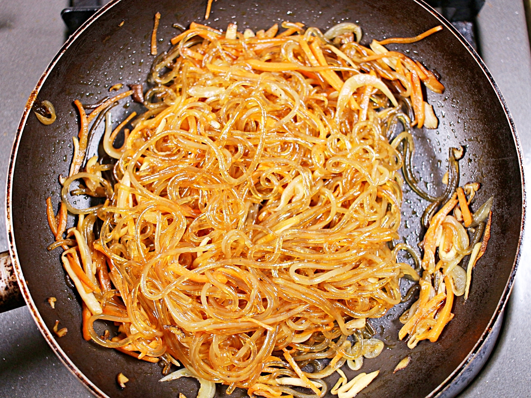 불린 당면을 넣고 같이 볶아주세요.