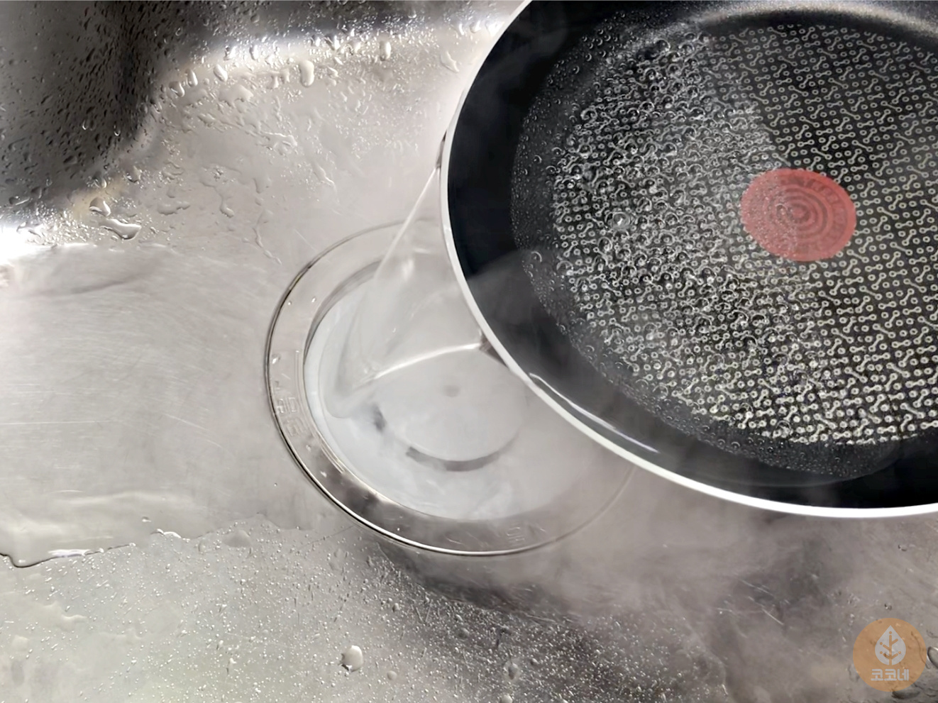 한김 식은 팬은 식초물을 따라버리고