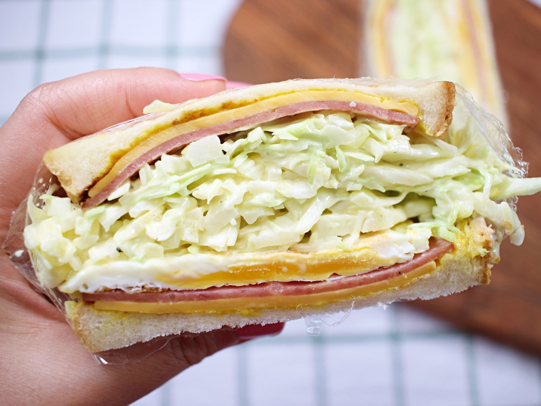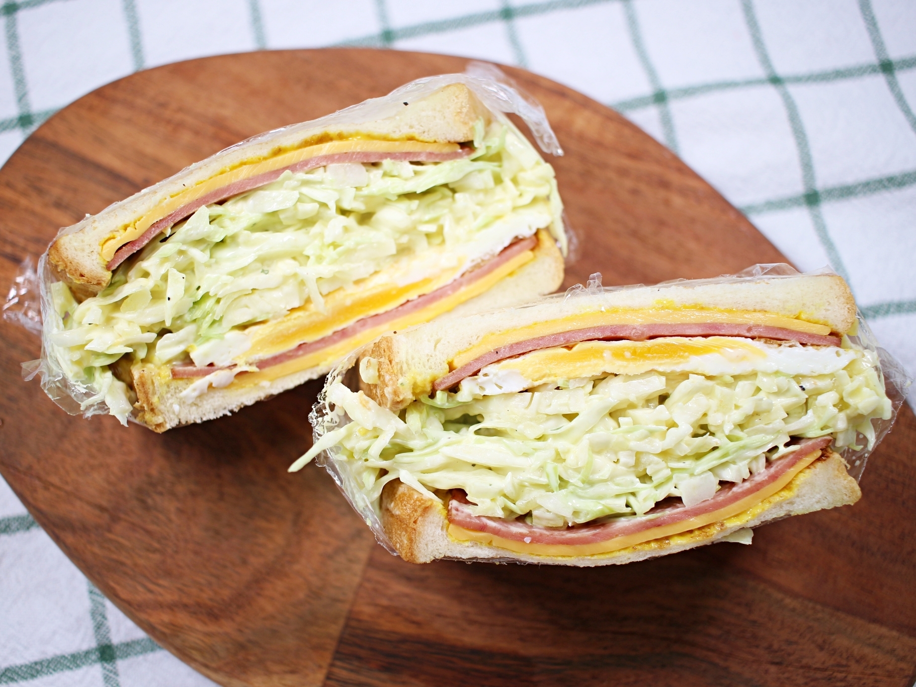 한쪽만 먹어도 든든한 양배추 듬뿍 샌드위치예요.