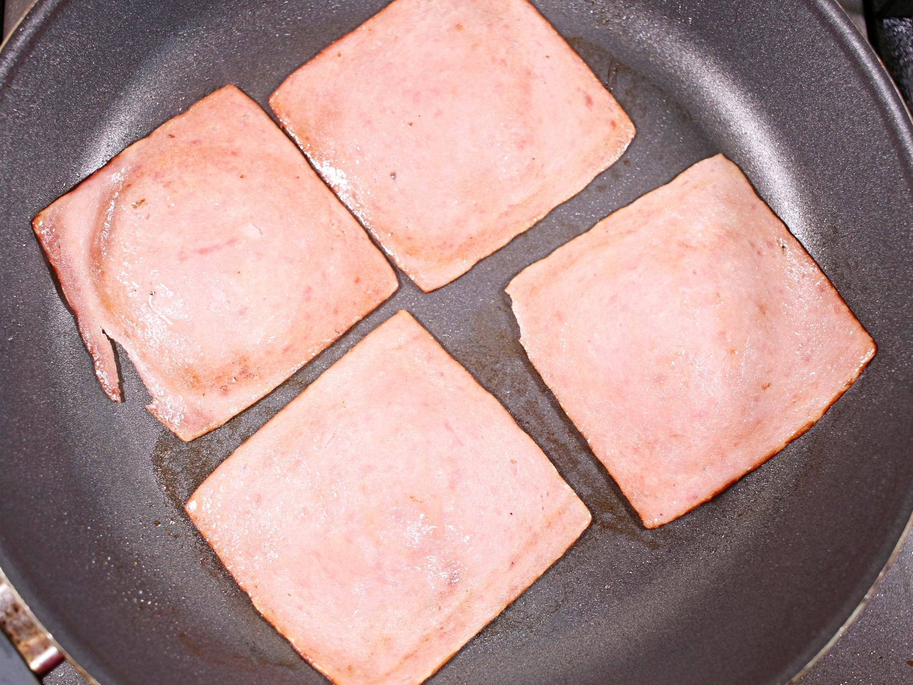 노른자 촉촉한 달걀후라이와 구운 슬라이스 햄도 준비해요.