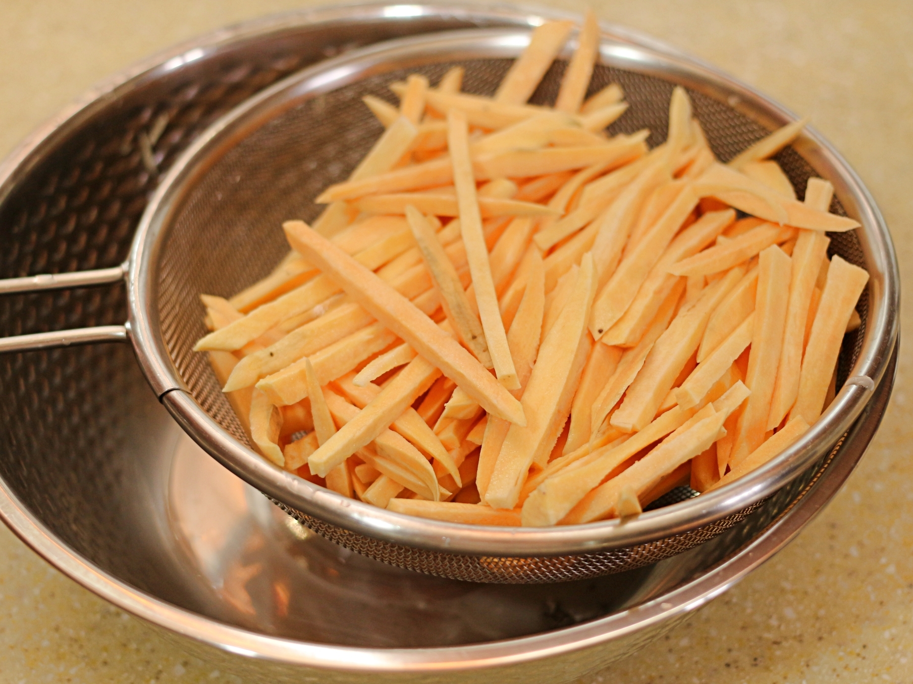 고구마를 채 썰어주세요.