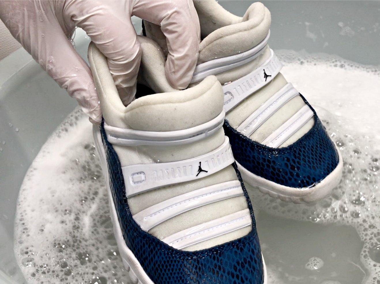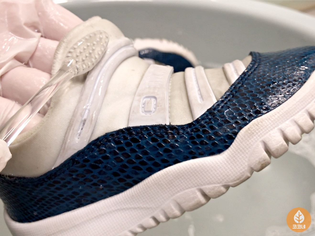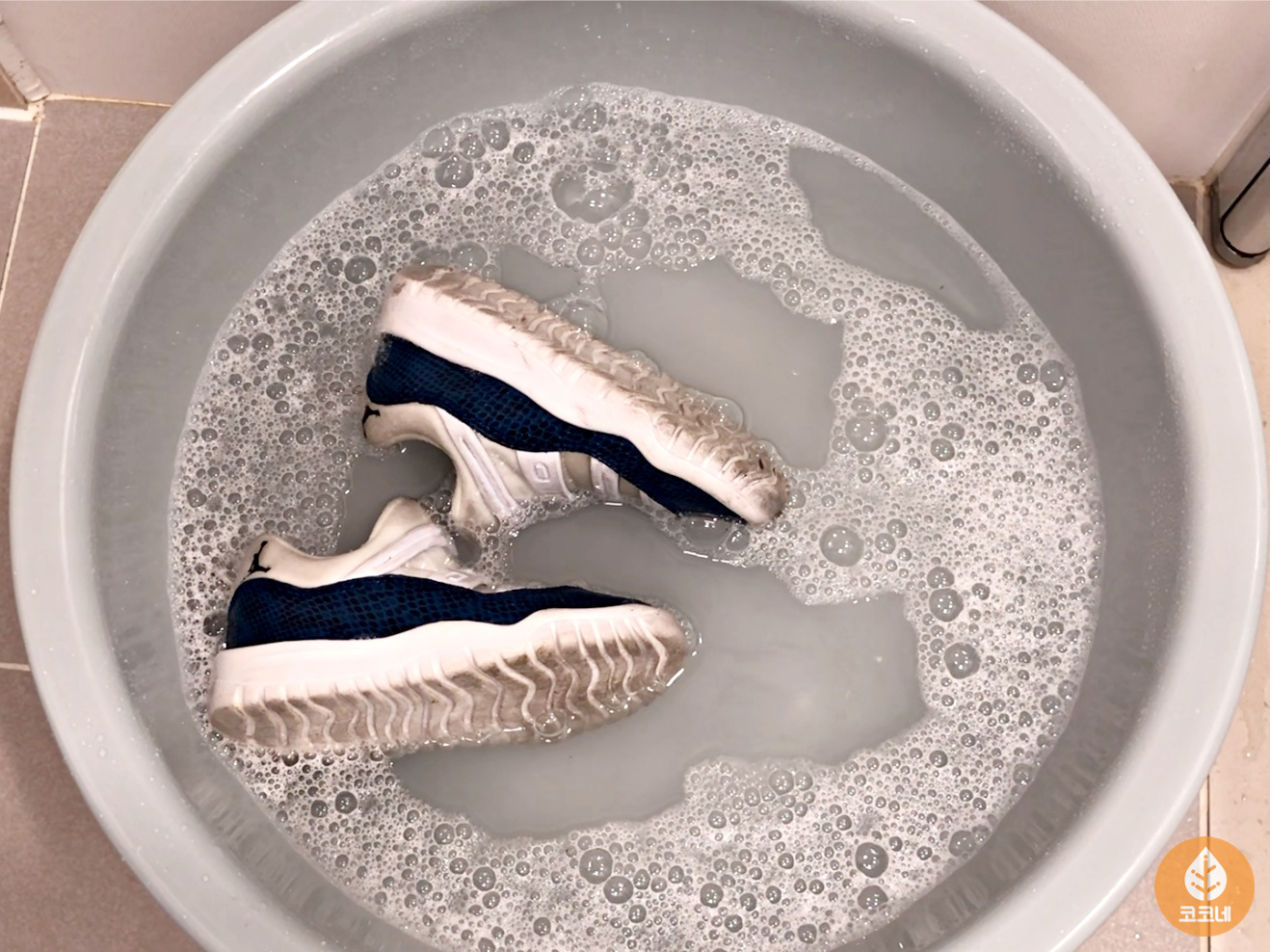 세제물에 운동화를 담그고