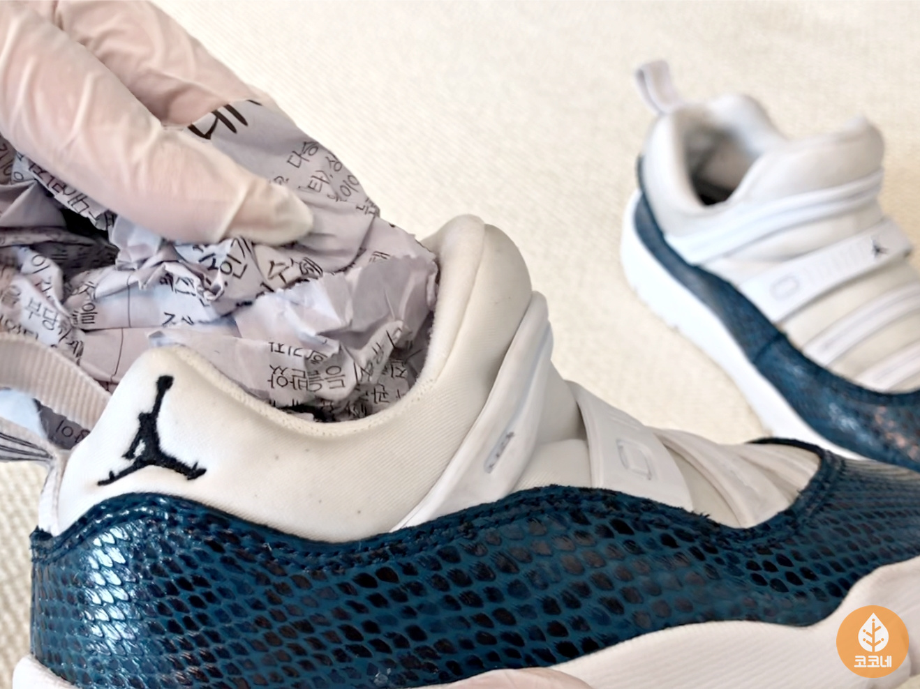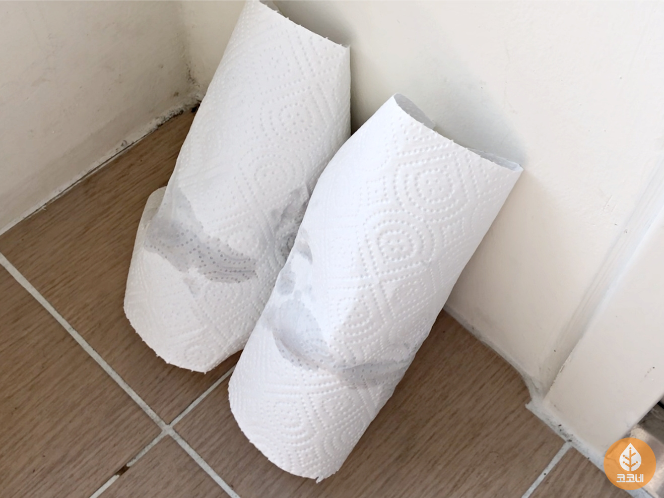흰운동화를 키친타월로 감싸서 말리는 거예요!