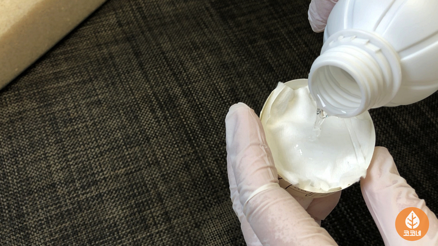 종이컵에 화장솜을 두툼하게 깔아주시고요.