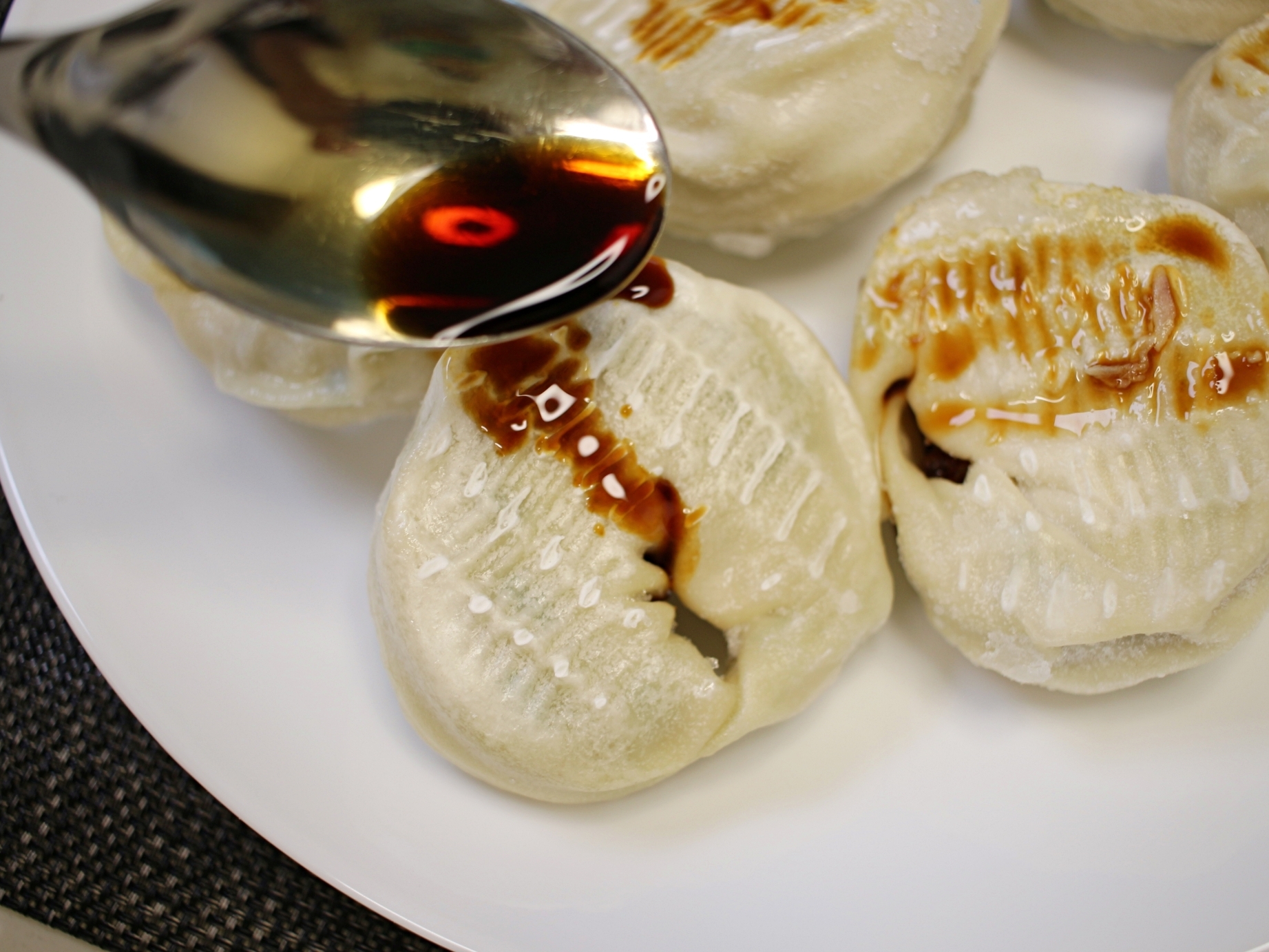 간장으로 인해 쫀쫀해진 만두피를