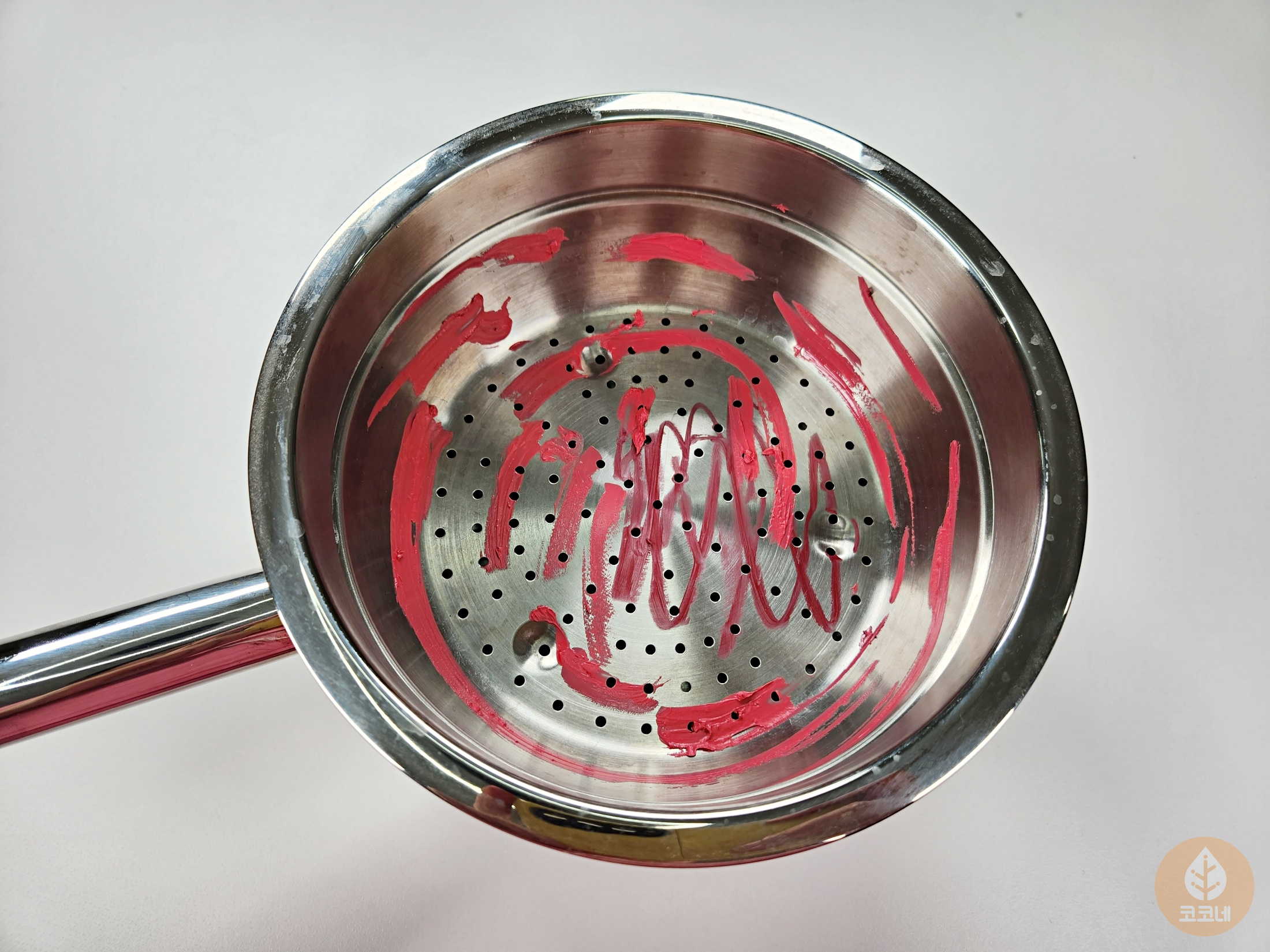 스테인리스 냄비에 립스틱을 바르면