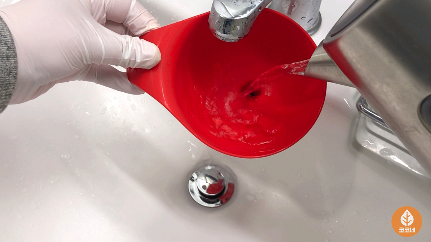 뜨거운물을 조금씩 천천히 흘려보내주세요.