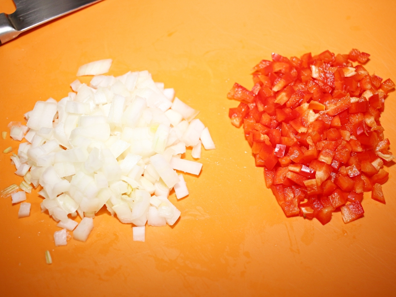 파프리카, 양파는 깨끗하게 씻어서 작게 썰어요.