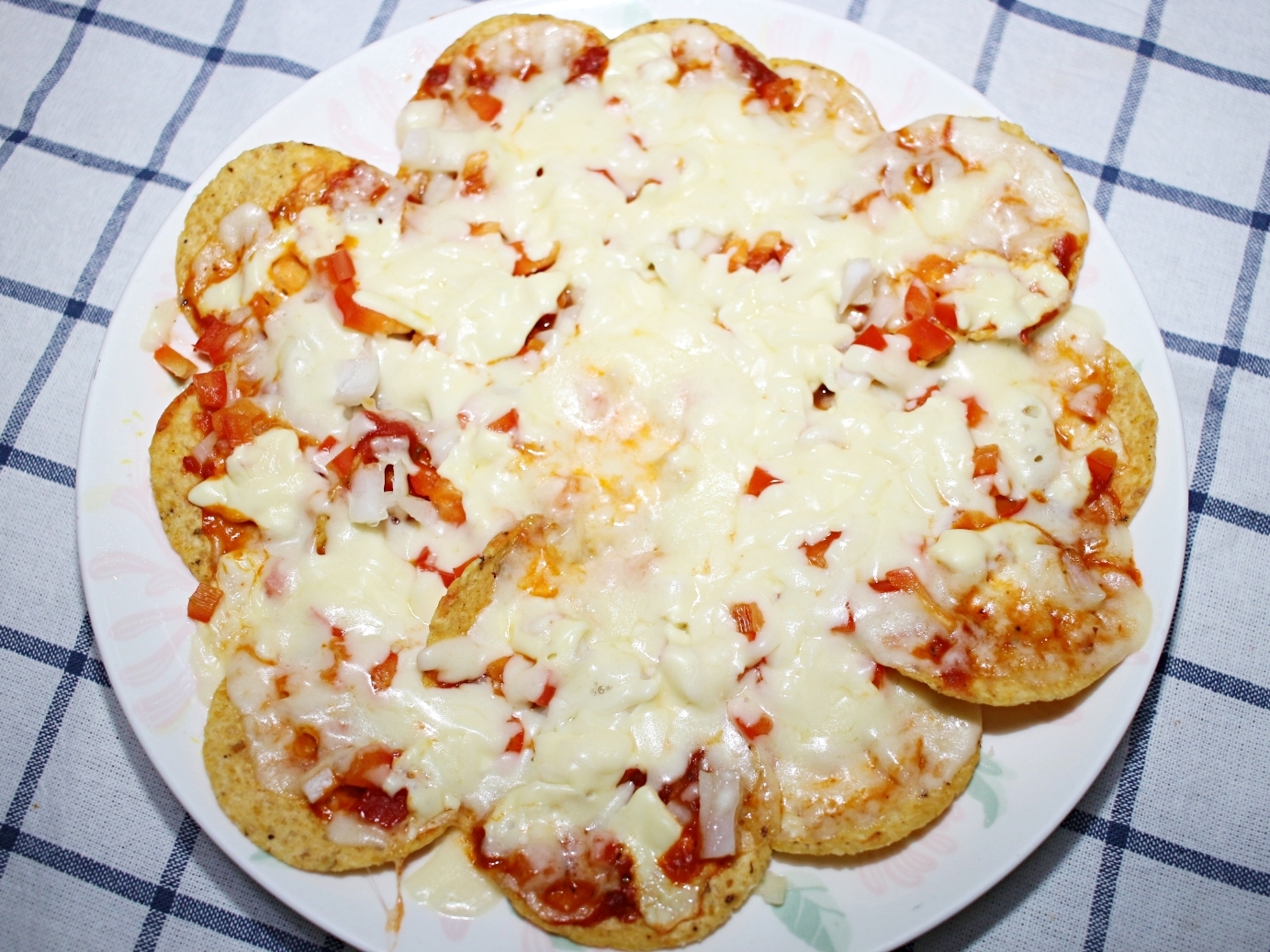 재료는 나초, 토마토소스, 치즈, 파프리카, 양파 준비했고요.