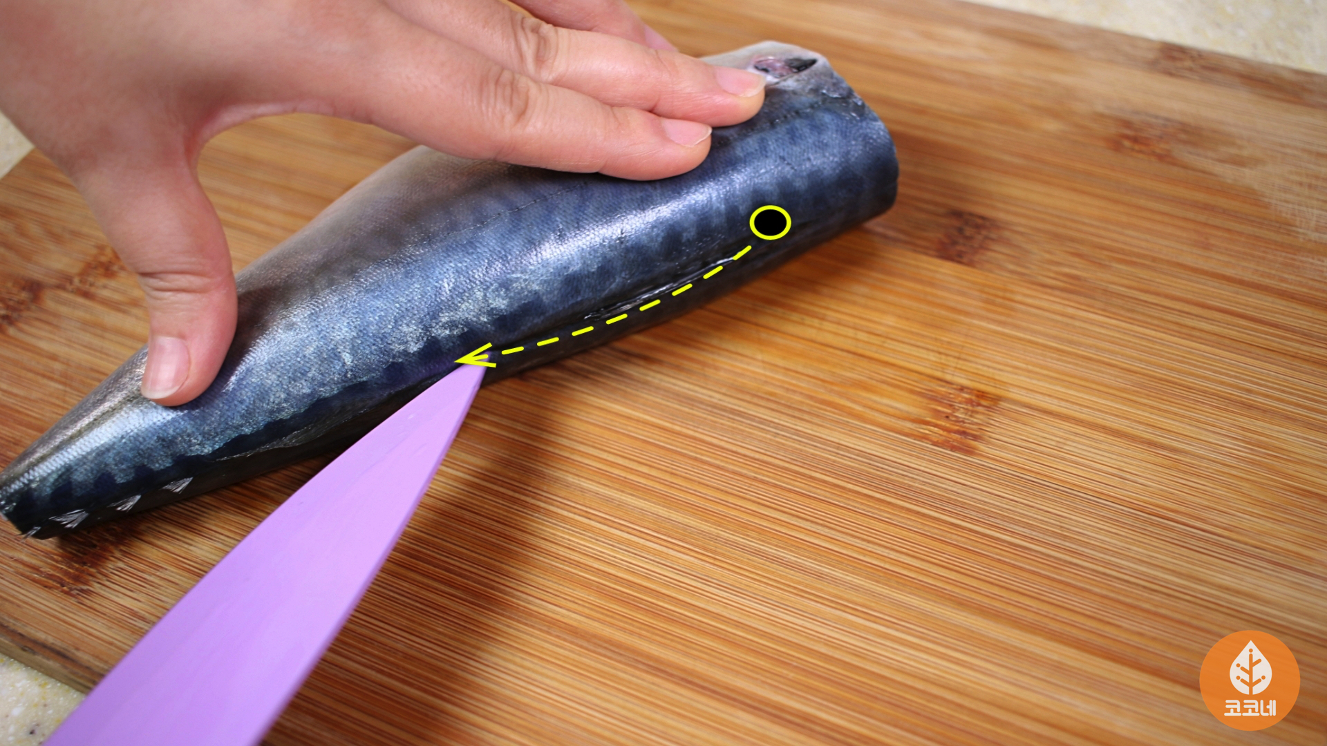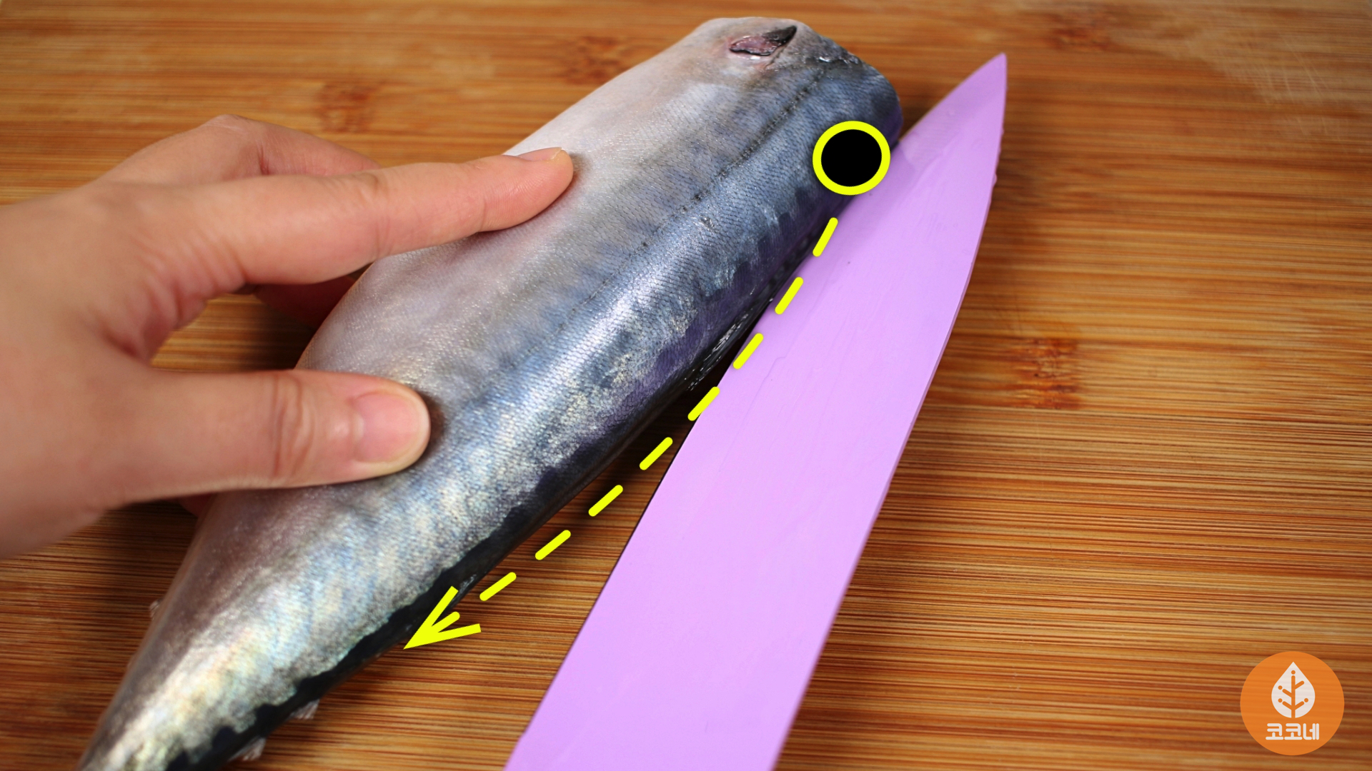 등부분 가운데 세로로 칼집을 넣어주세요.
