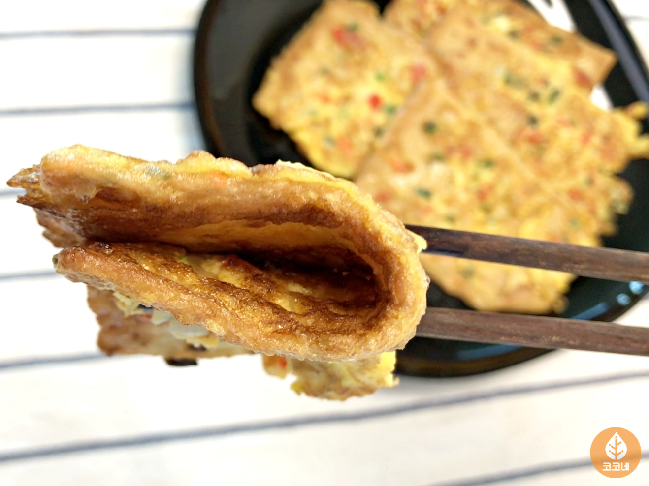 계란물에 소금 약간 넣어도 간을 맞춰도 되고요.