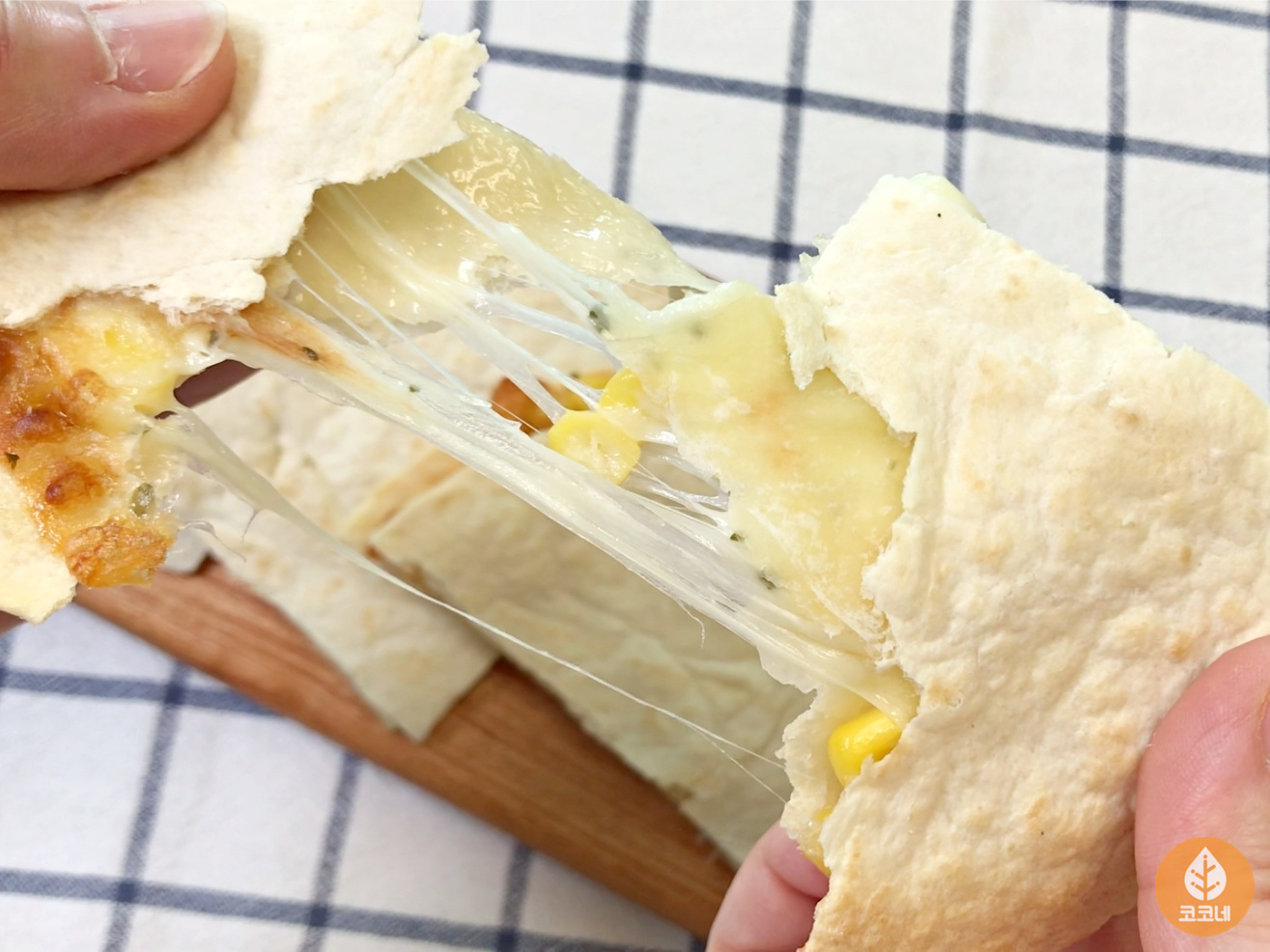 저는 또띠아를 덮어서 퀘사디아로 만들었어요.