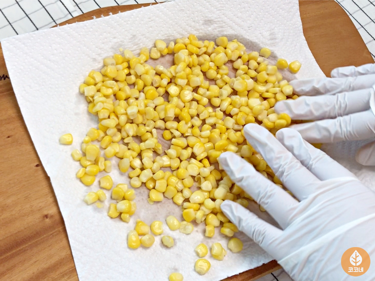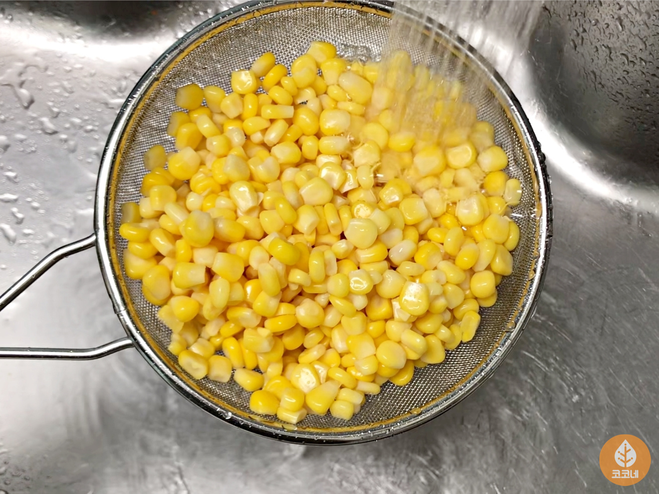 캔옥수수는 흐르는 물에 헹군 다음 물기 빼 주시고요.