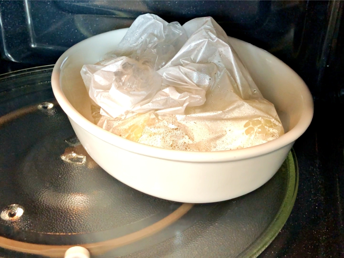 내열 용기에 봉지째 올려주세요.