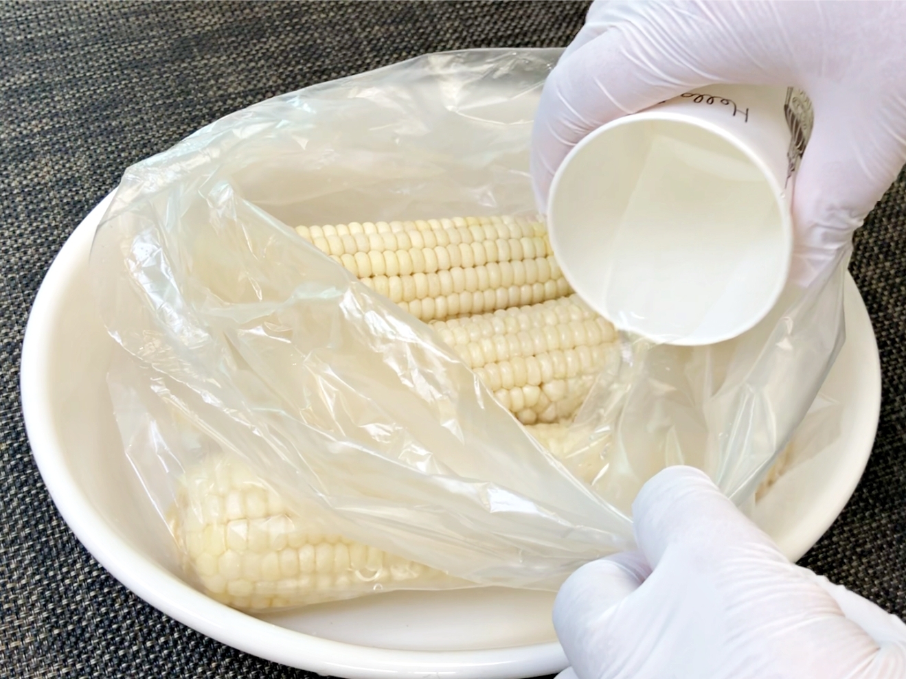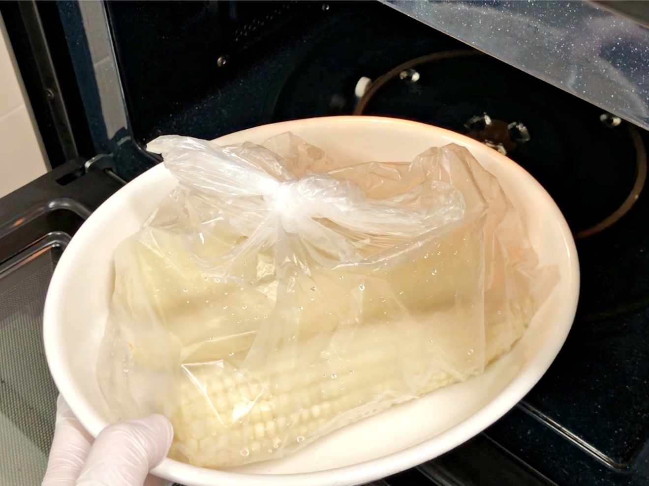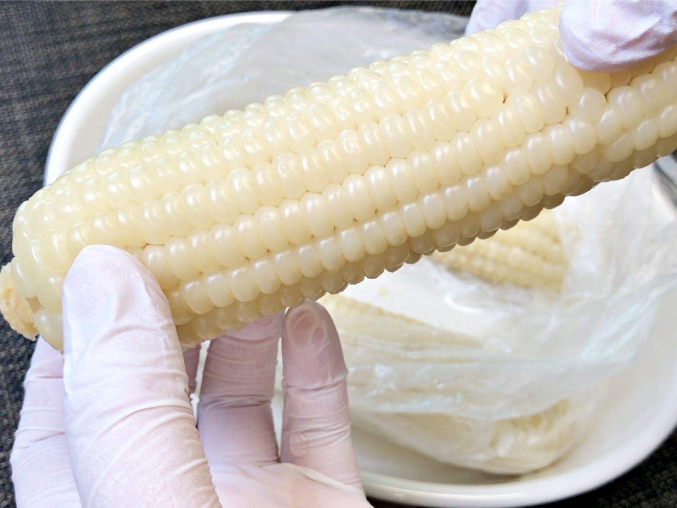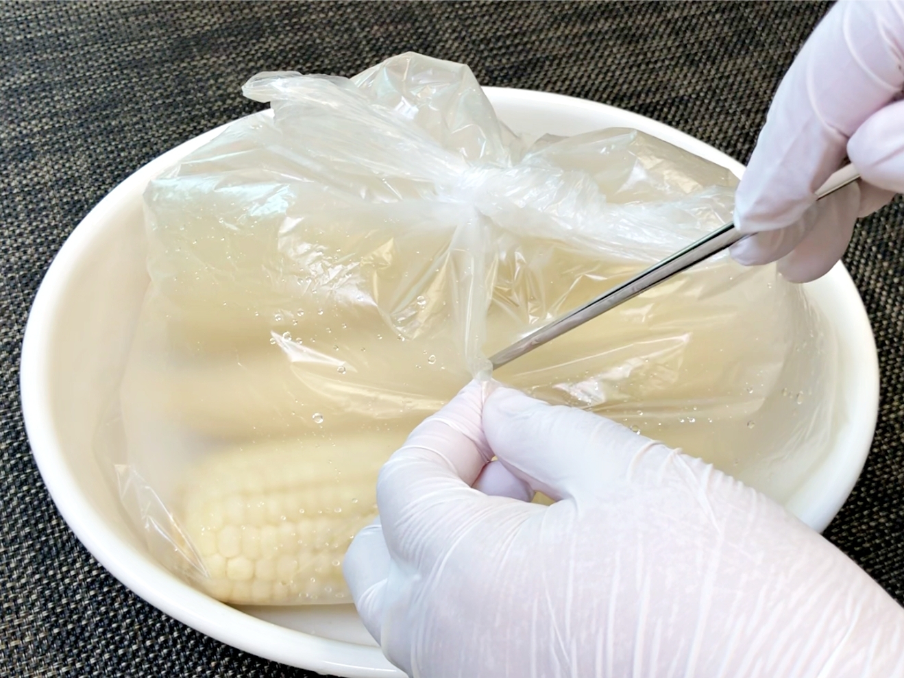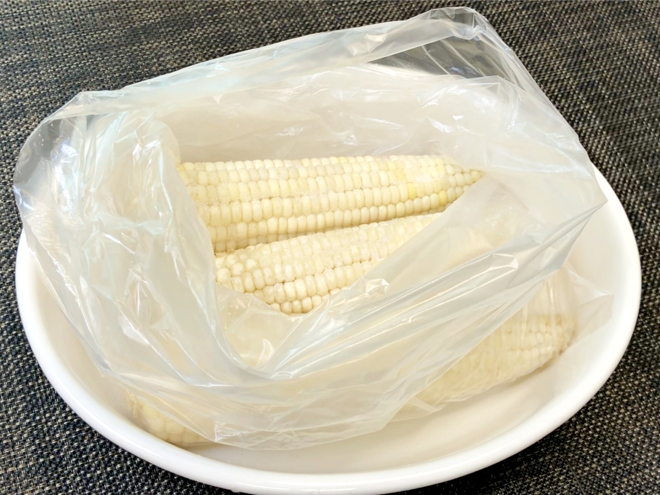 옥수수를 해동하지 않은 채로 위생백에 담고