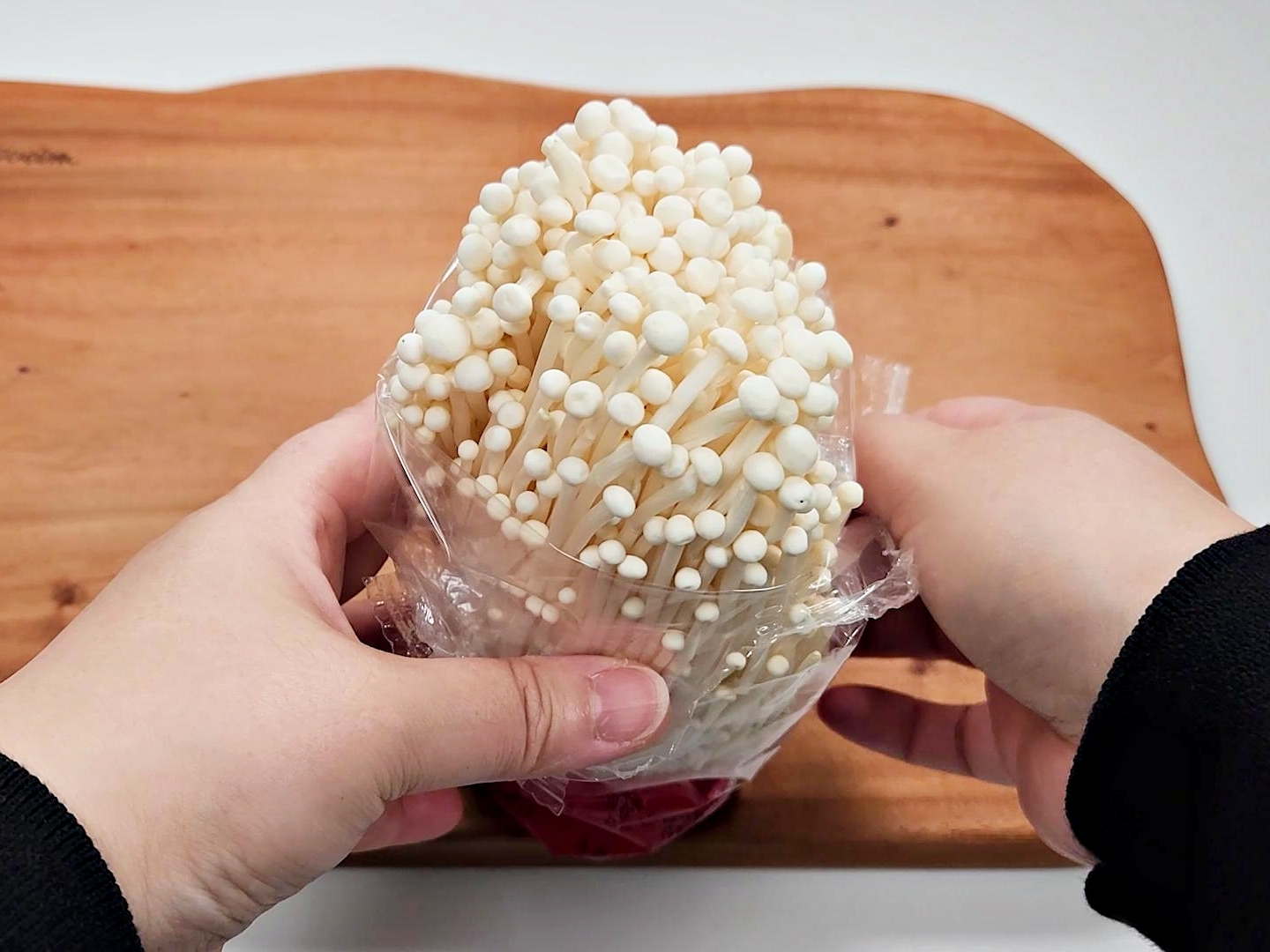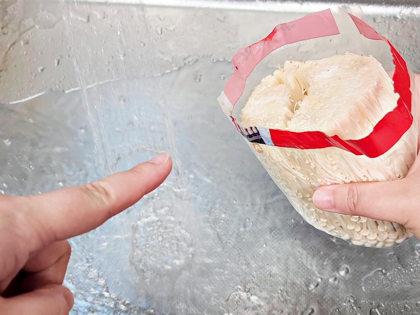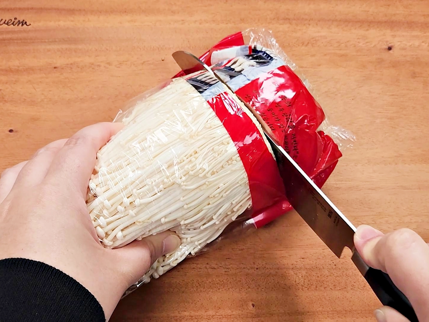 팽이버섯은 굳이 봉지에서 꺼낼 필요가 없어요.