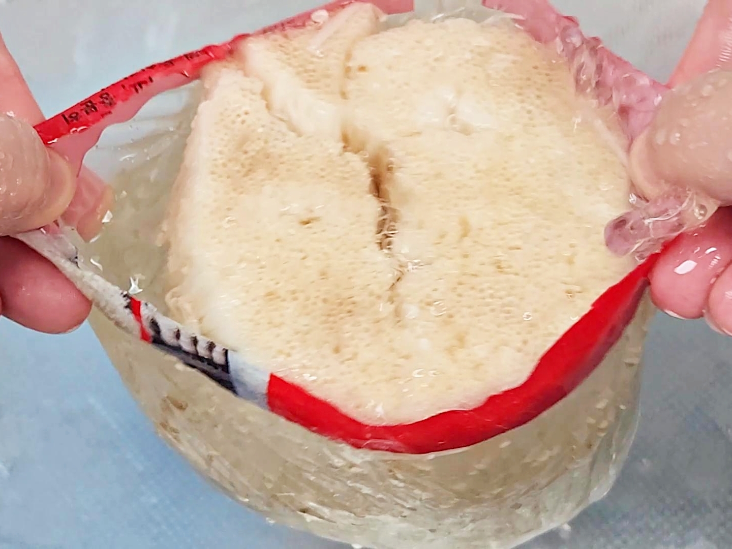 이후 봉지의 끝부분을 가위로 잘라 물을 따라내면