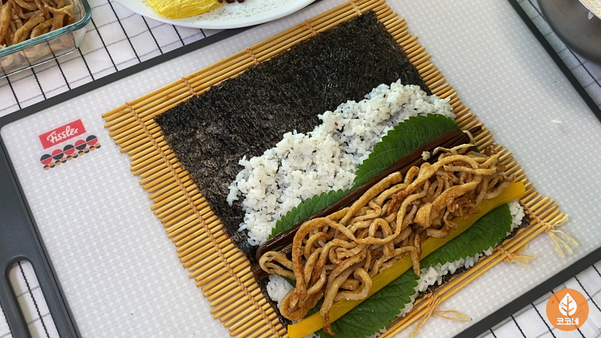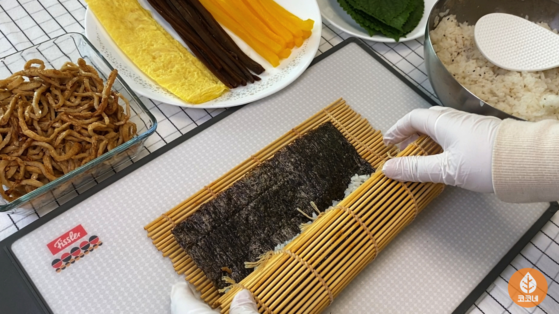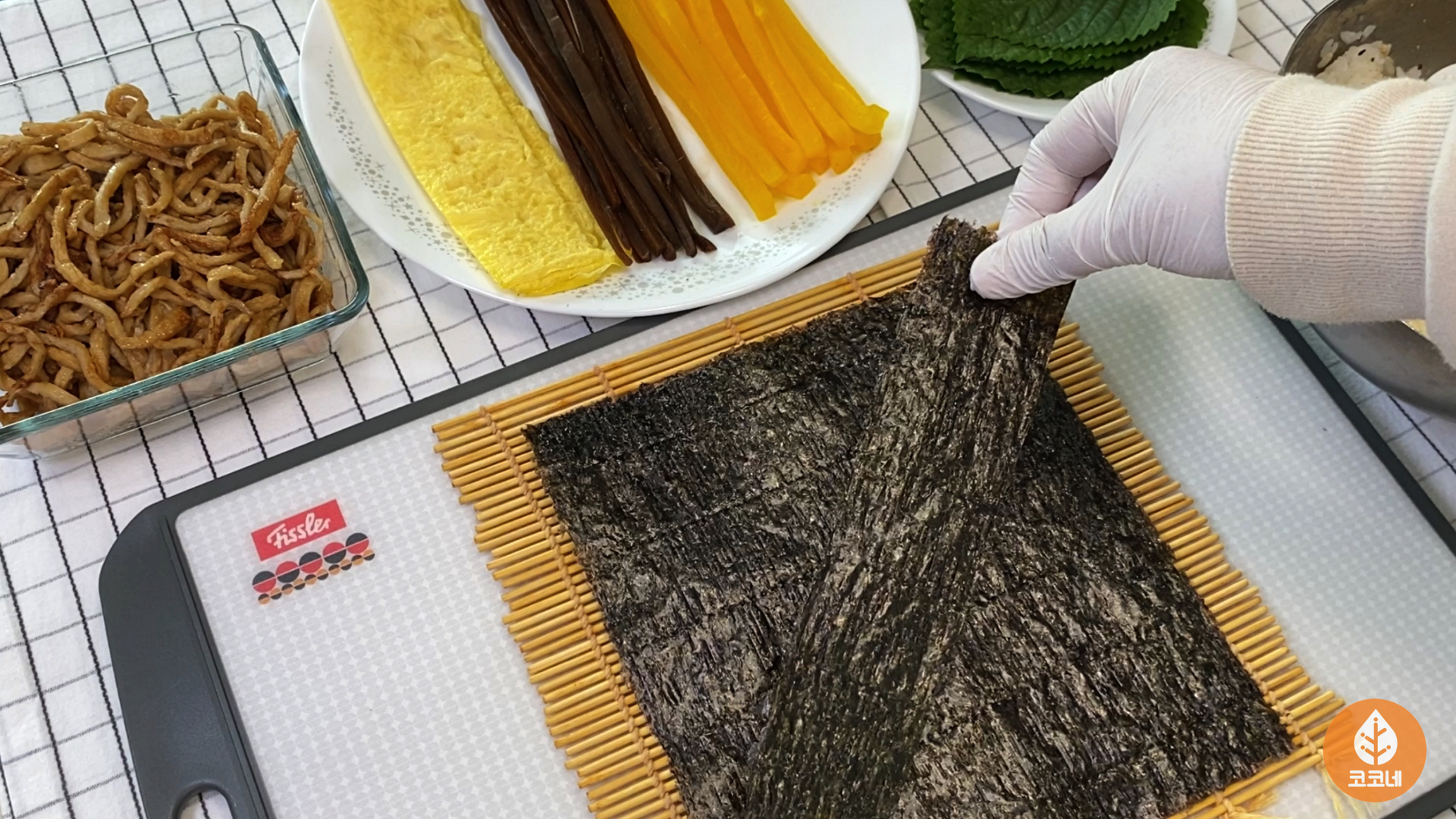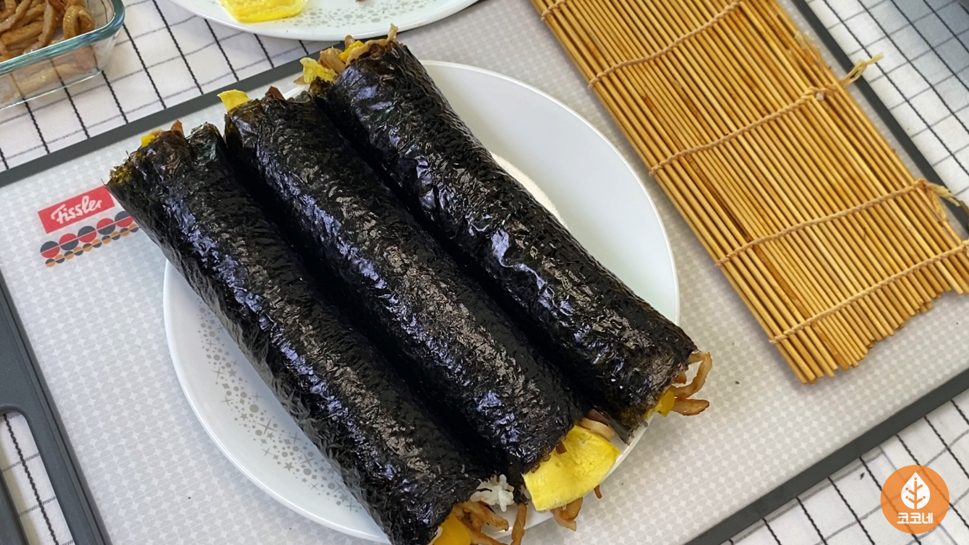 다른 김밥을 마는 동안 김이 잘 붙고요.