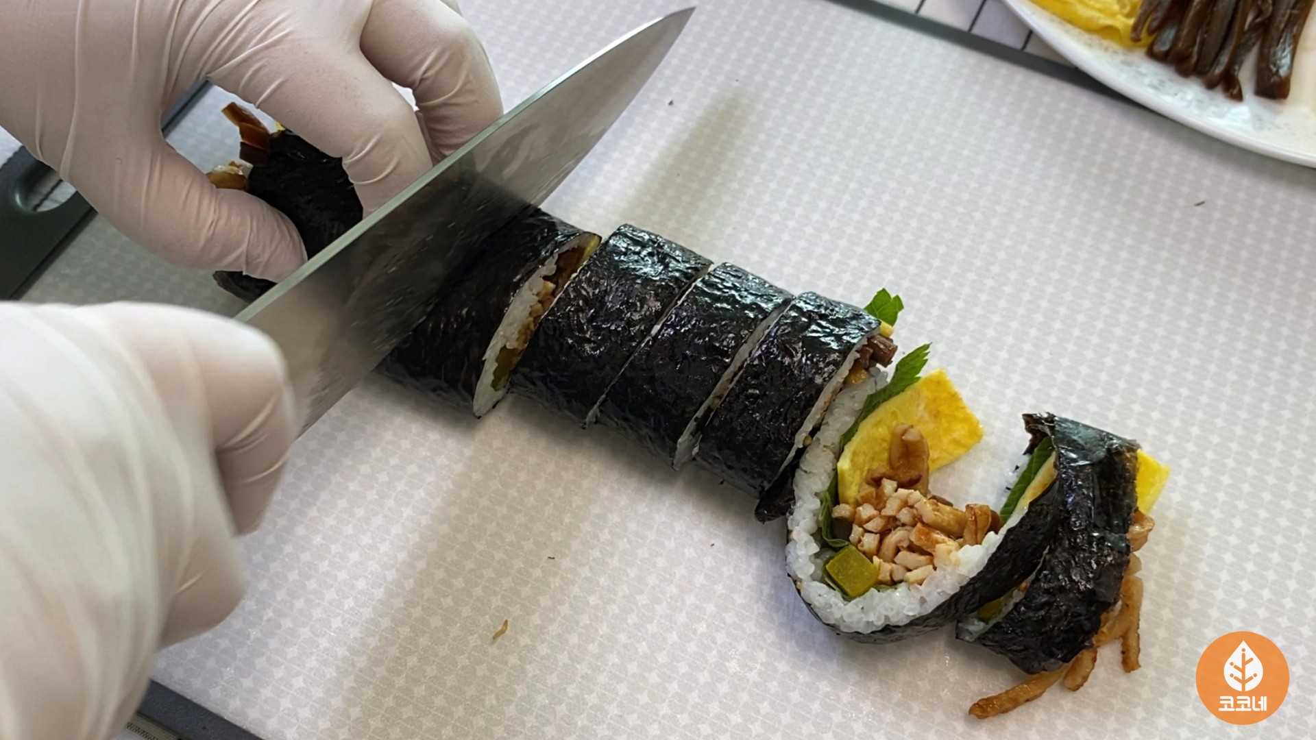 또, 말아놓은 김밥을 접시에 올려둘 때도