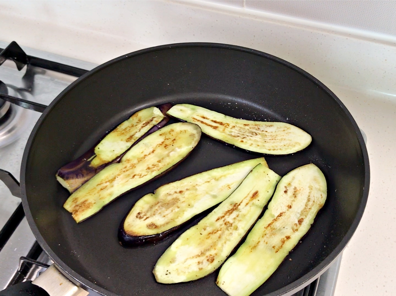 가지를 앞뒤로 노릇하게 구워주세요.