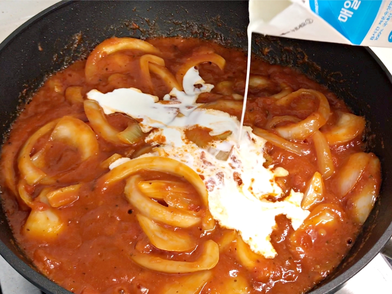 저는 로제소스 맛을 내려고 생크림을 약간 섞었어요.