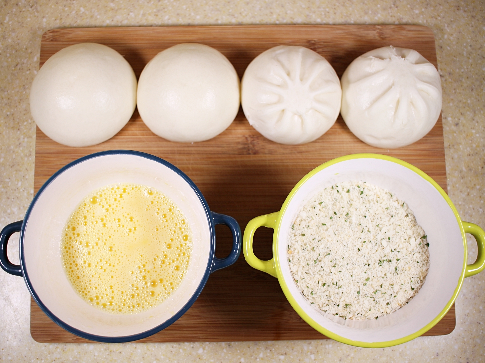 빵가루에 파슬리를 살짝 섞어 향과 비주얼을 더했어요.