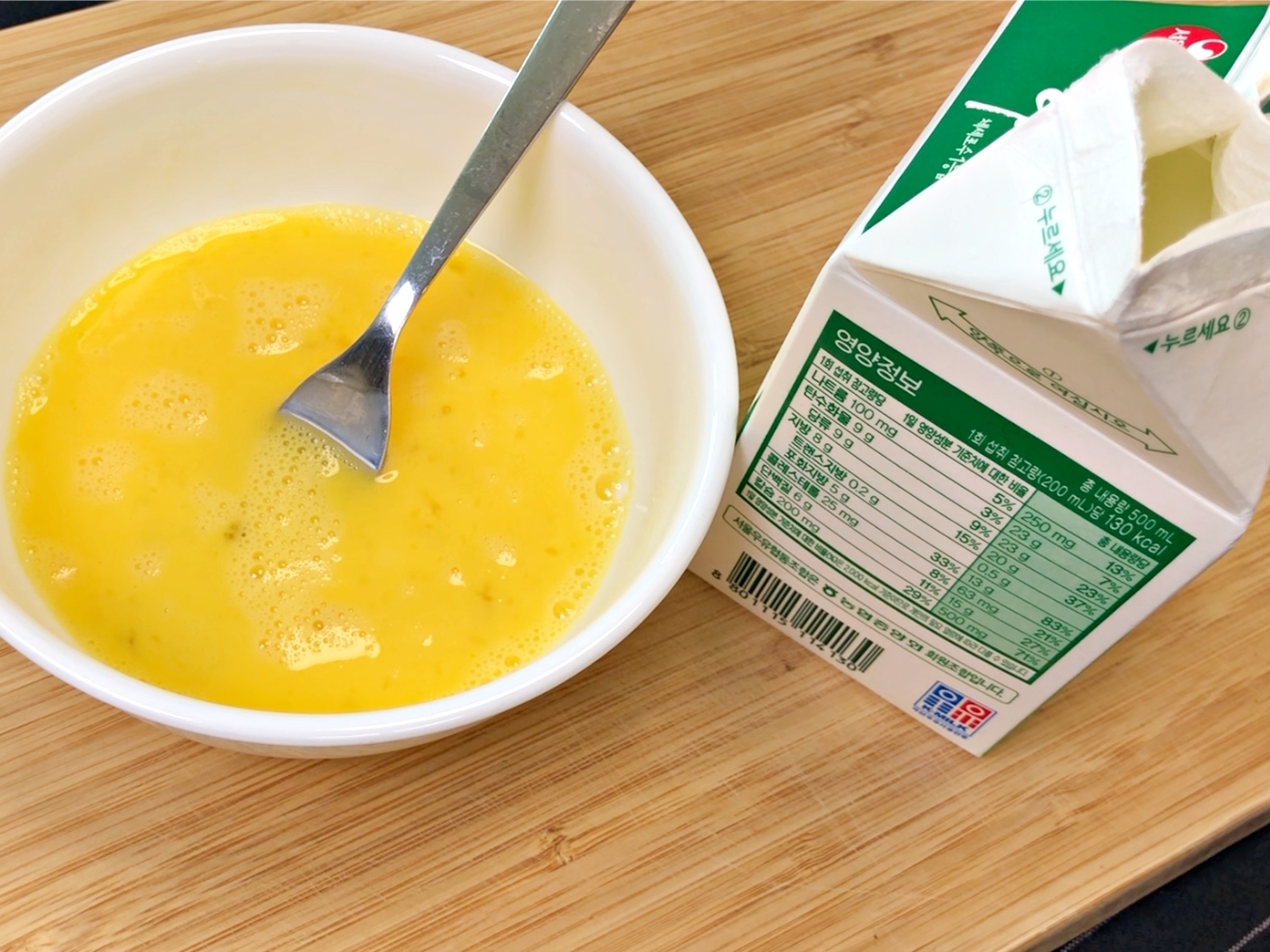 계란물에 흰우유를 섞어서 부드러움을 살리는게 포인트!