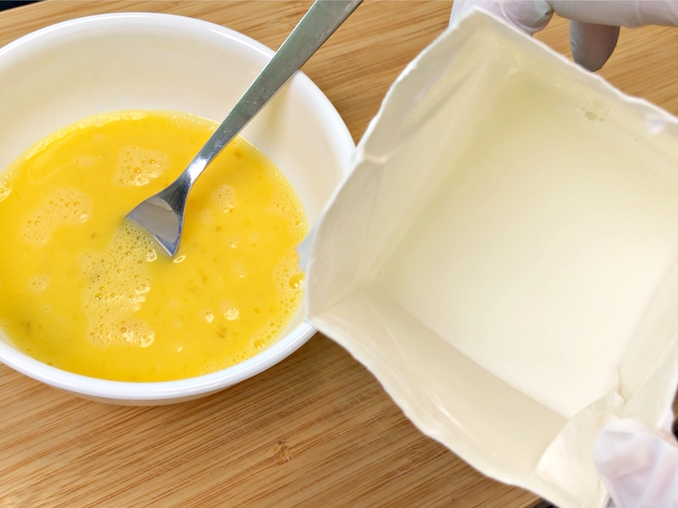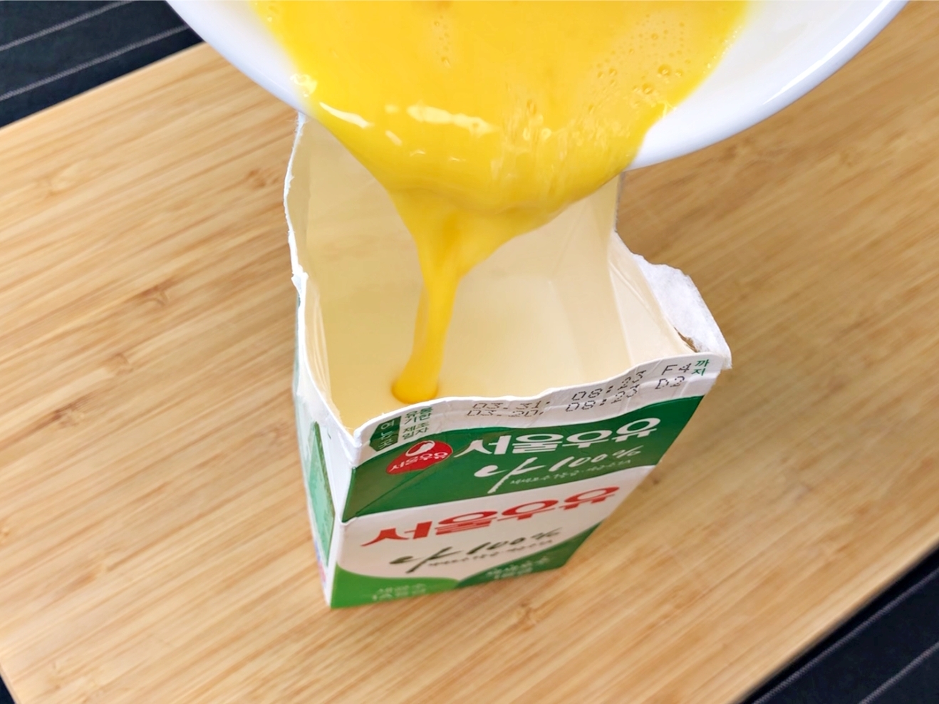 대부분 계란물에 흰우유를 직접 붓는데요.