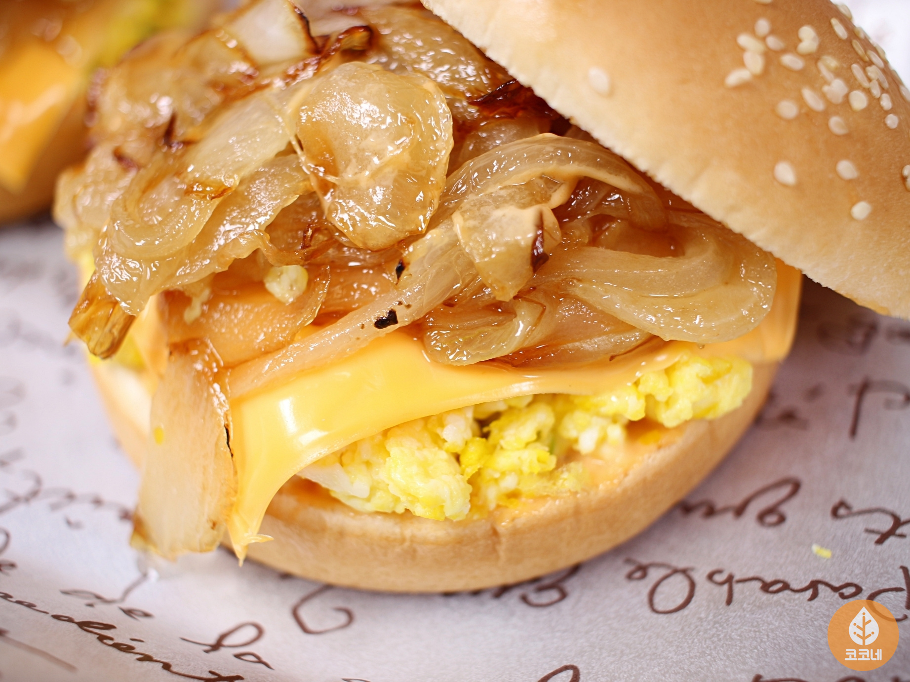 스크램블에그, 슬라이스치즈, 볶은양파
