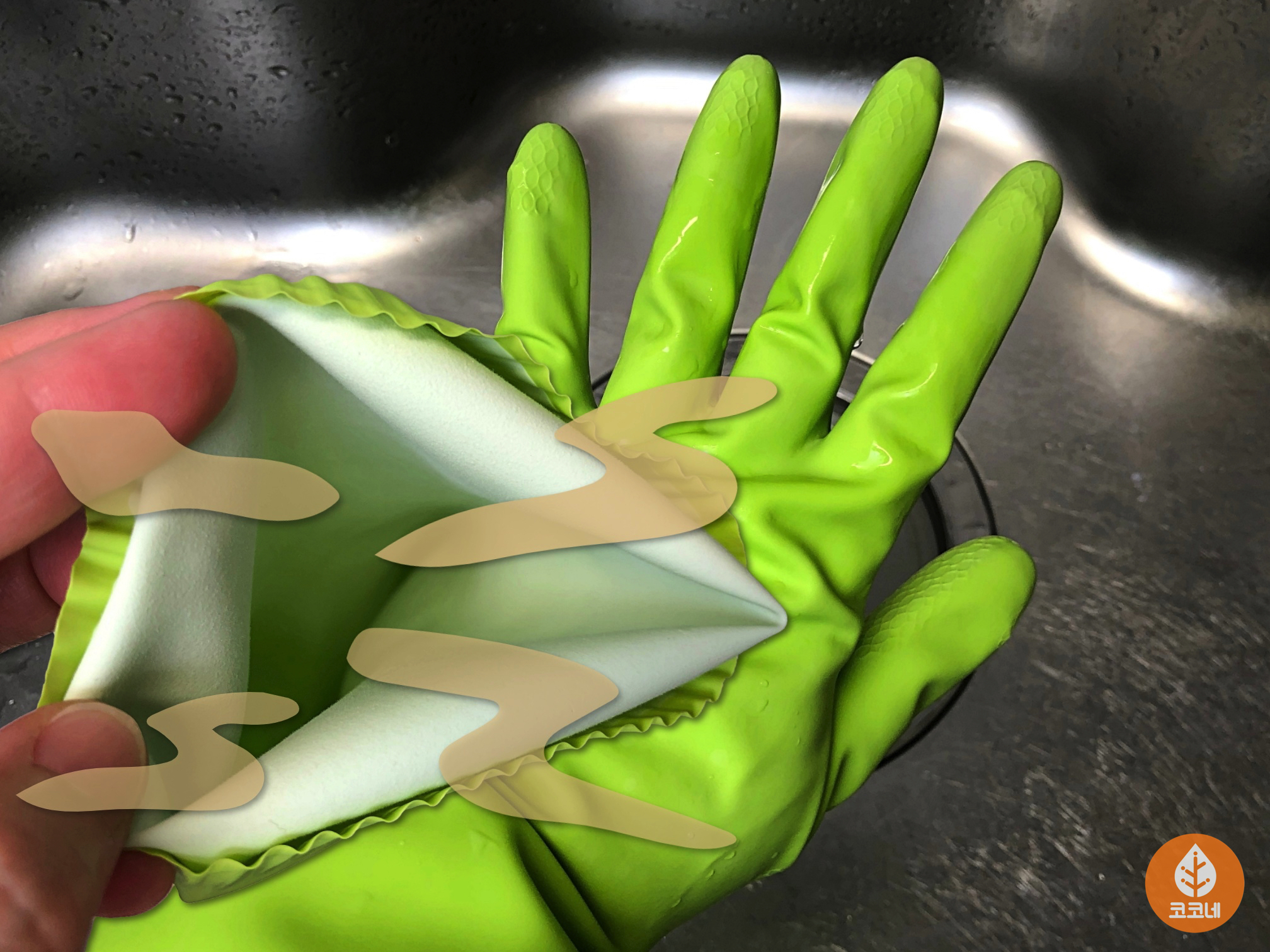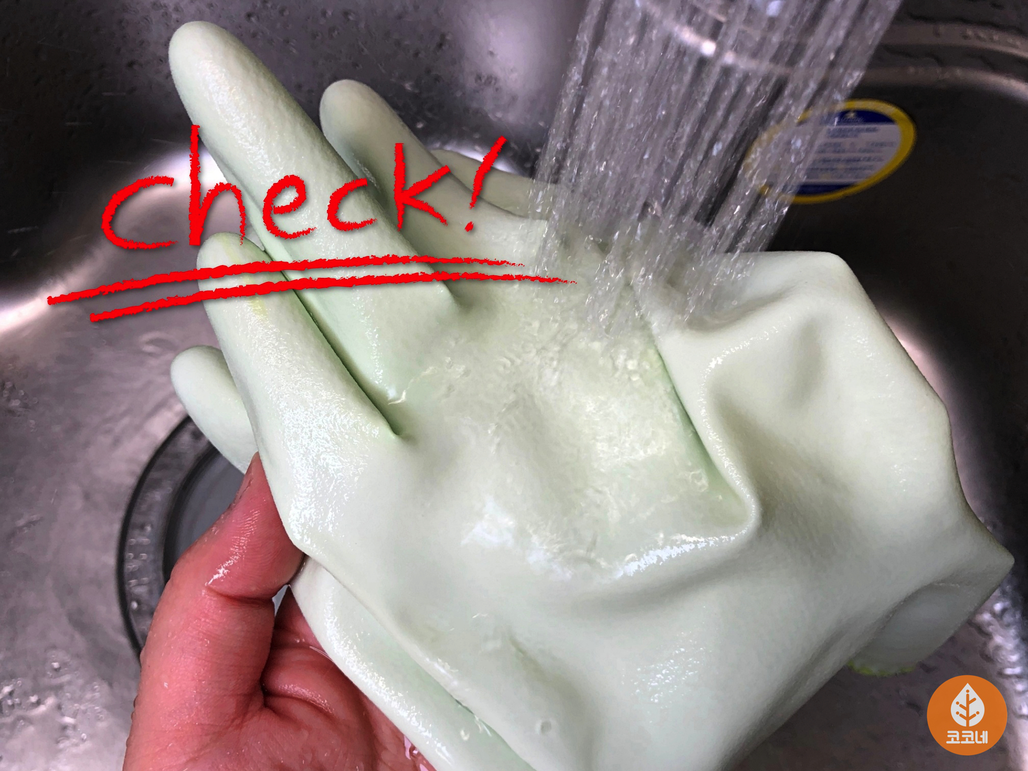 고무장갑 속 세정제와 물이 흐르지 않도록