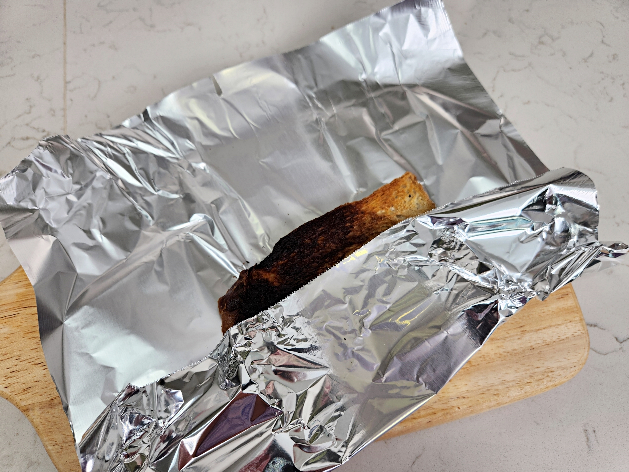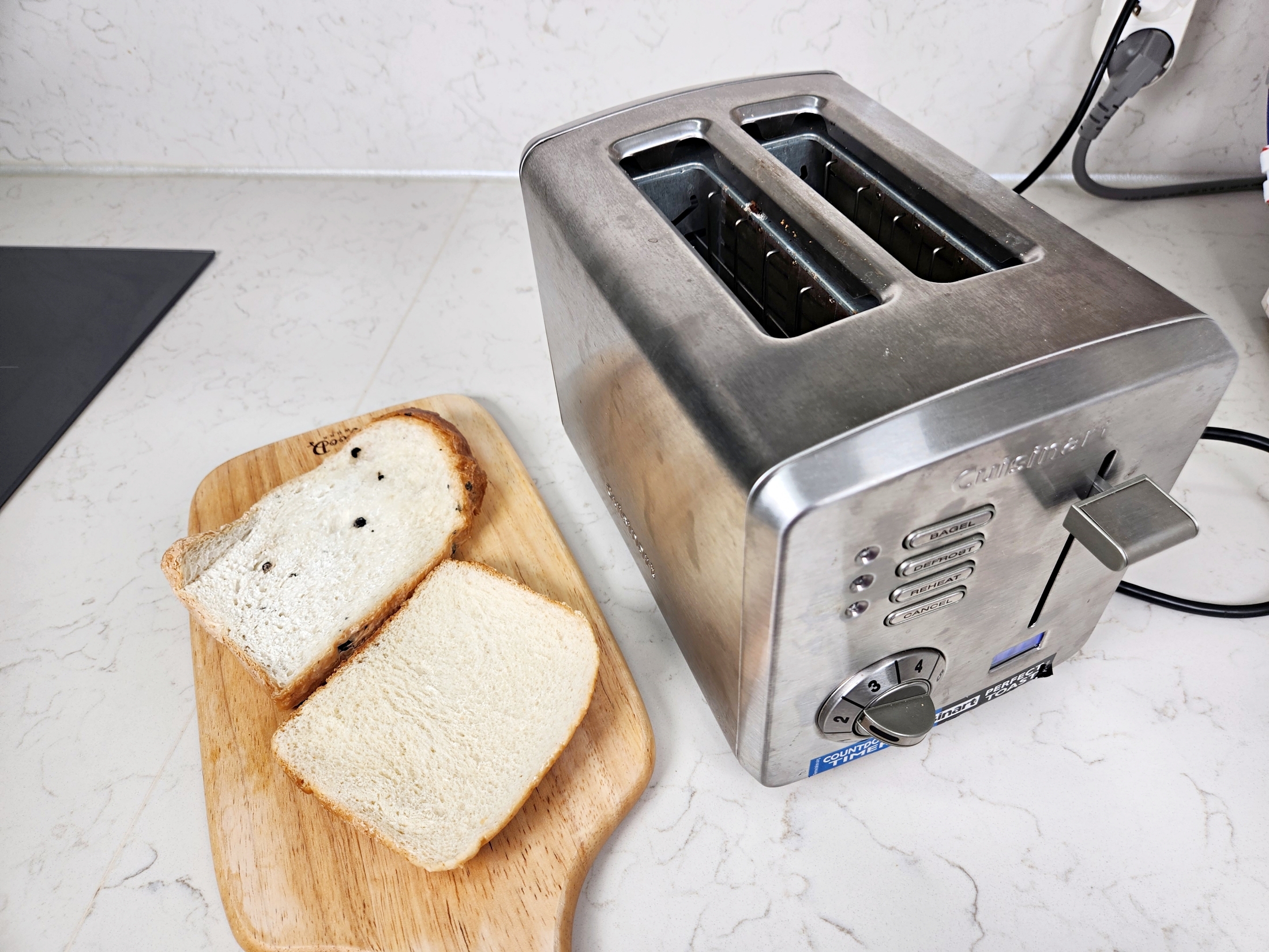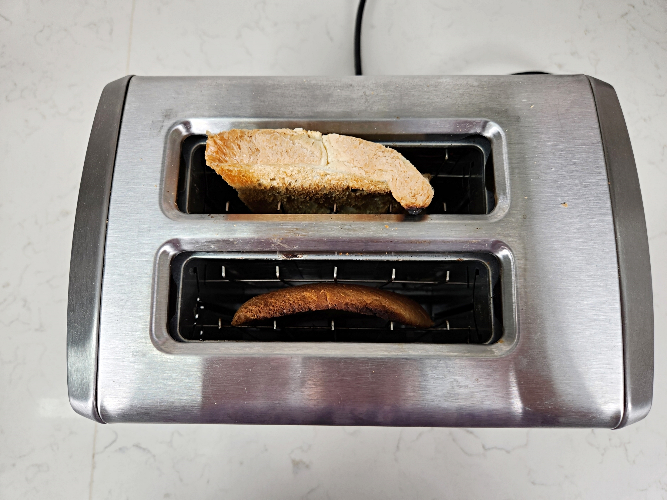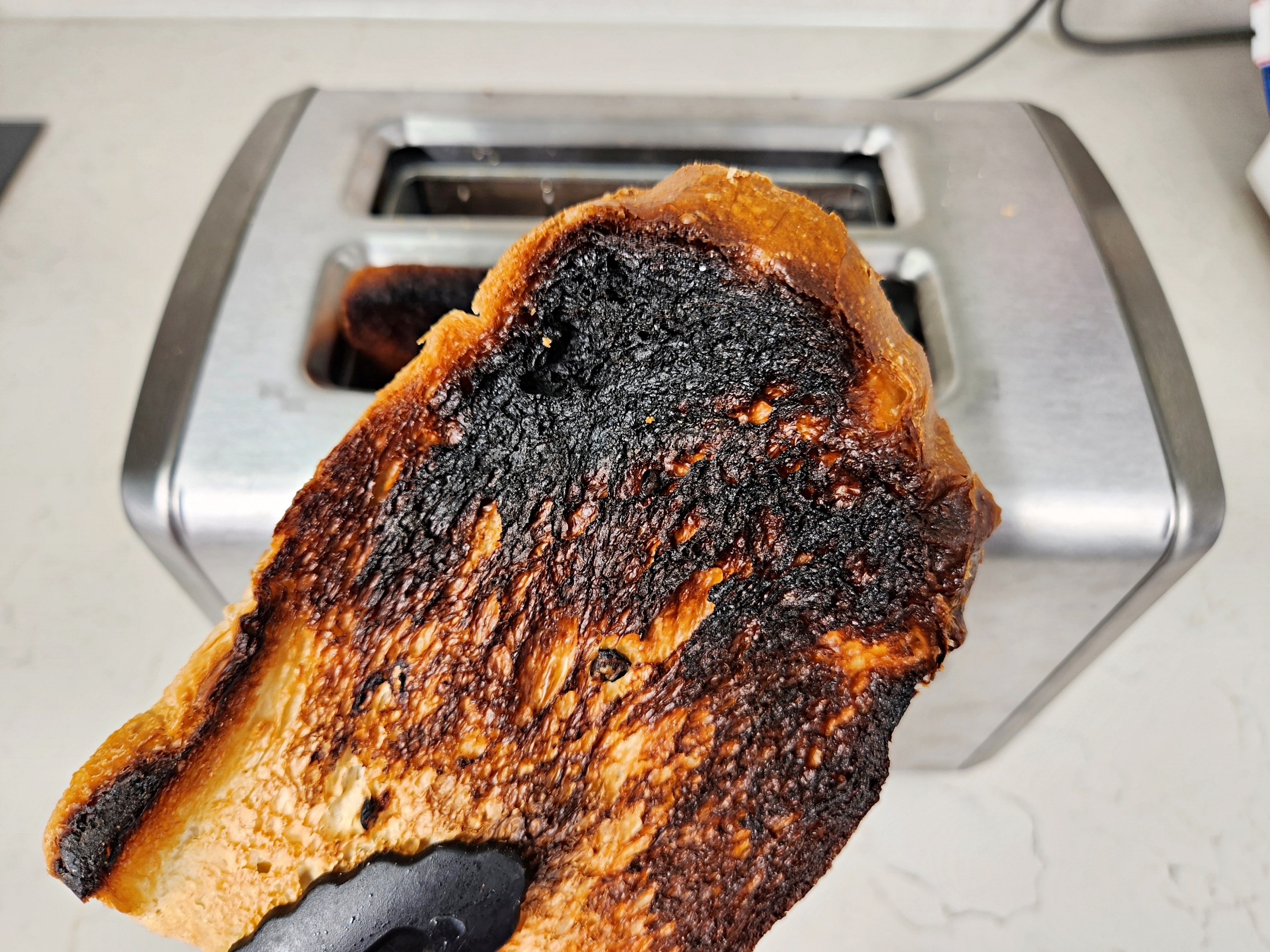 거의 숯처럼 보일 정도로 새까맣게 변한 식빵을 확인할 수 있어요.