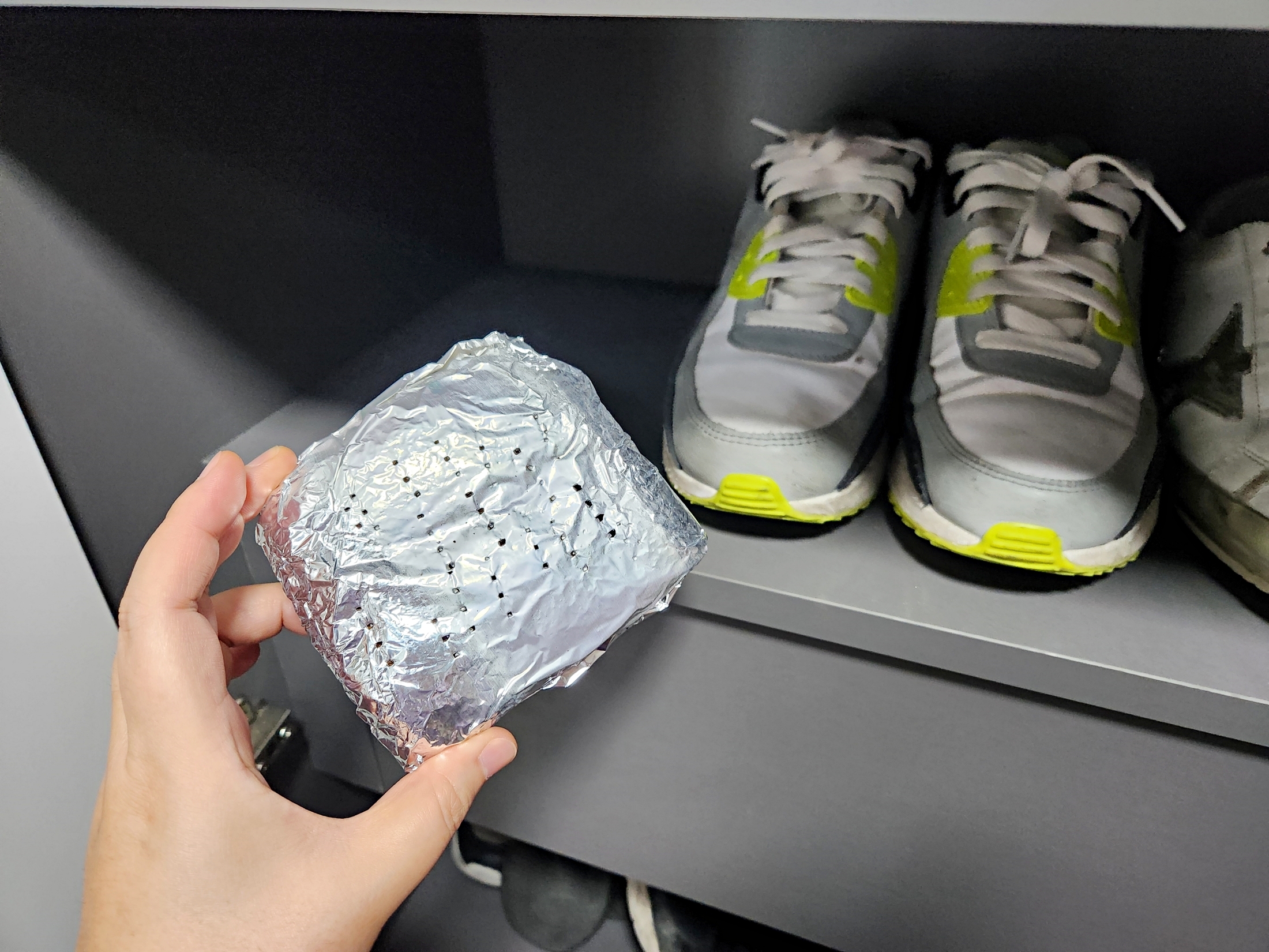 신발장 안에 하나만 넣어둬도 꿉꿉한 냄새 제거에 도움이 돼요.