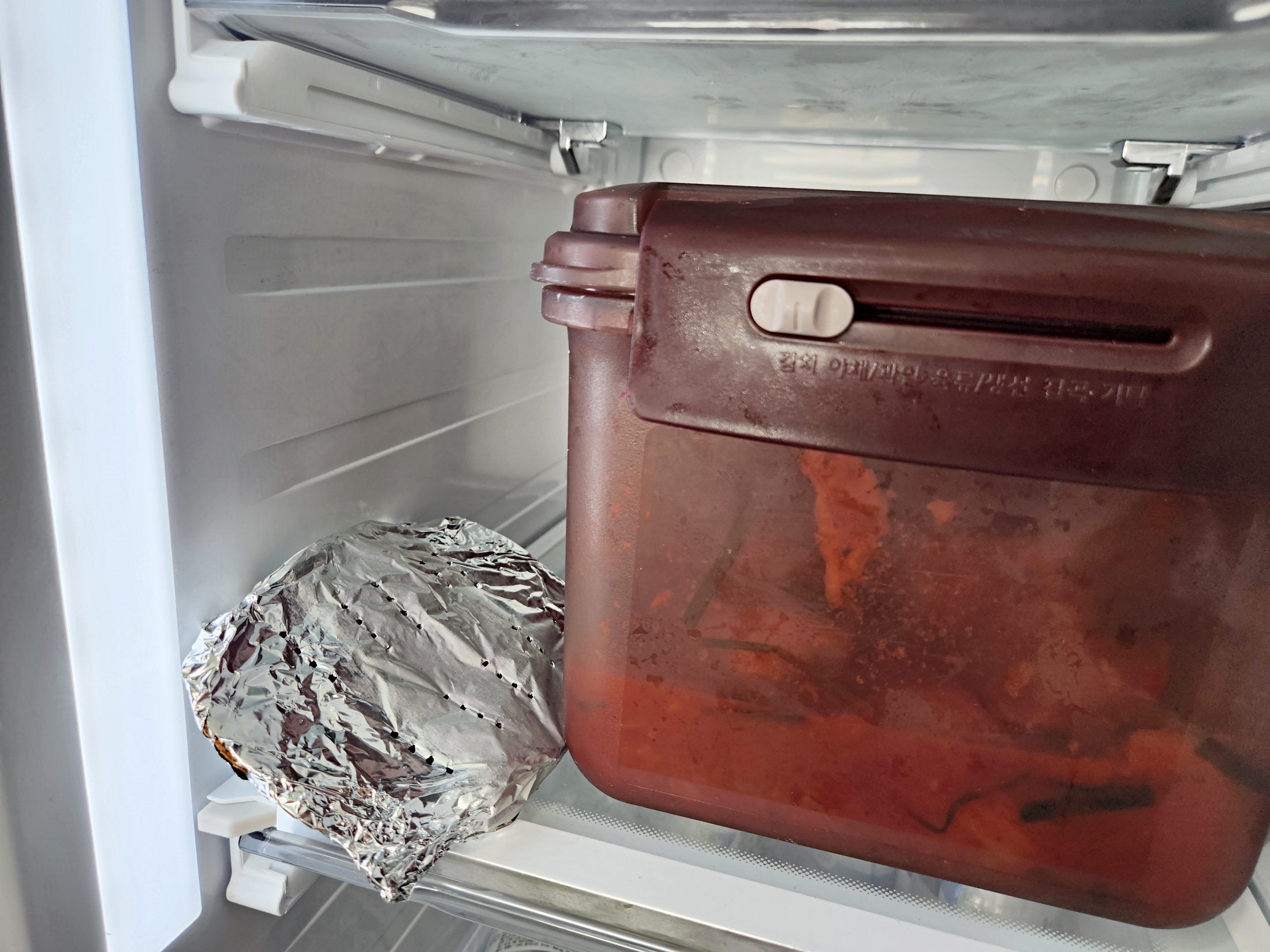 냉동실에 넣어주자니 시간이 지나면서 냄새가 배어