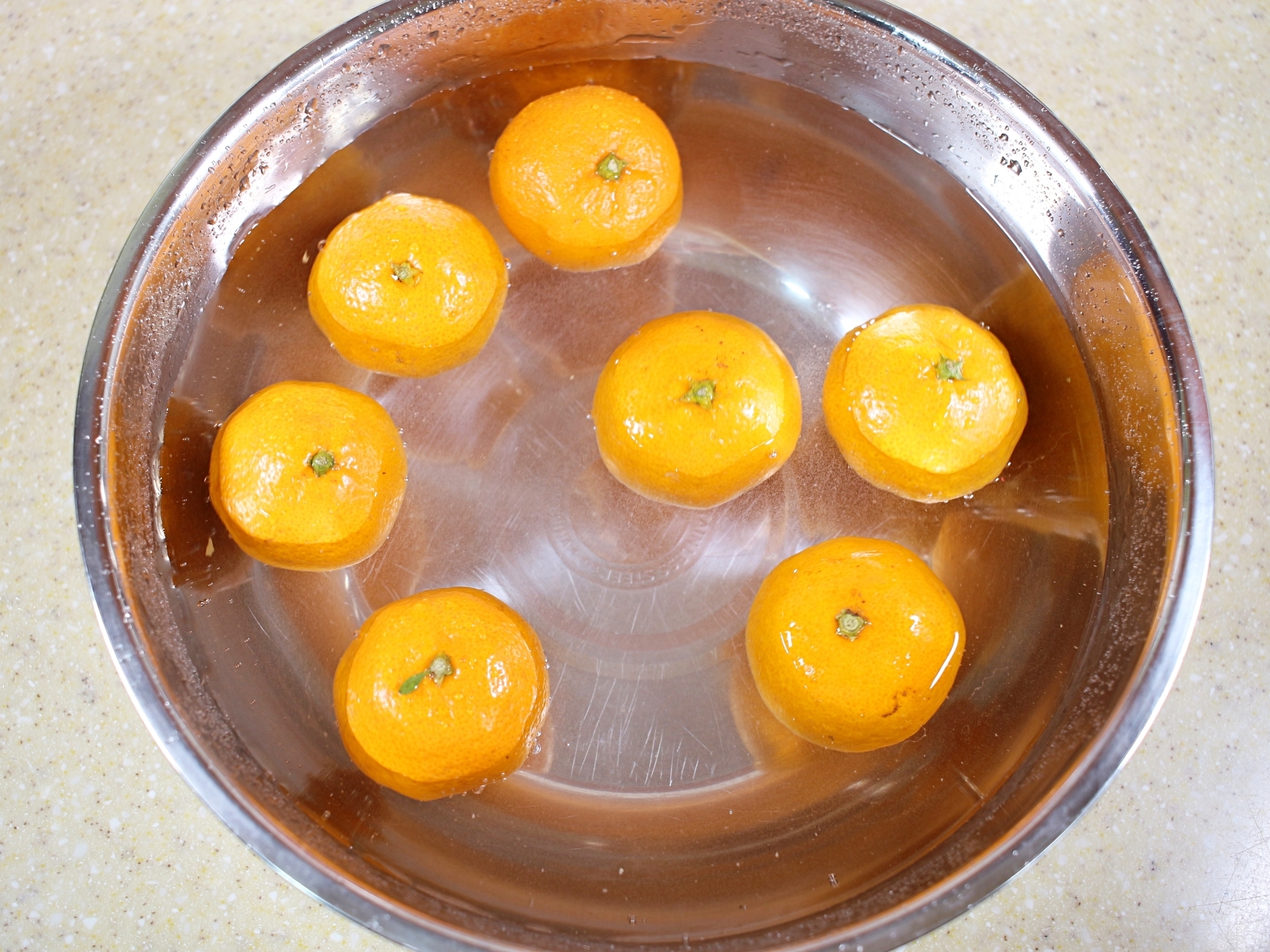 식초가 귤껍질에 잘 스며들도록 하는 과정이에요.