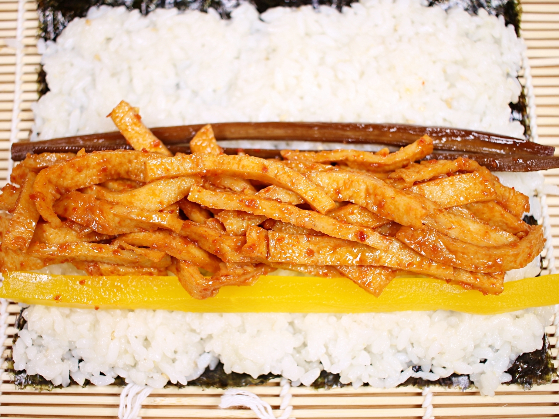재료는 사각어묵, 우엉, 단무지, 김밥김, 밥