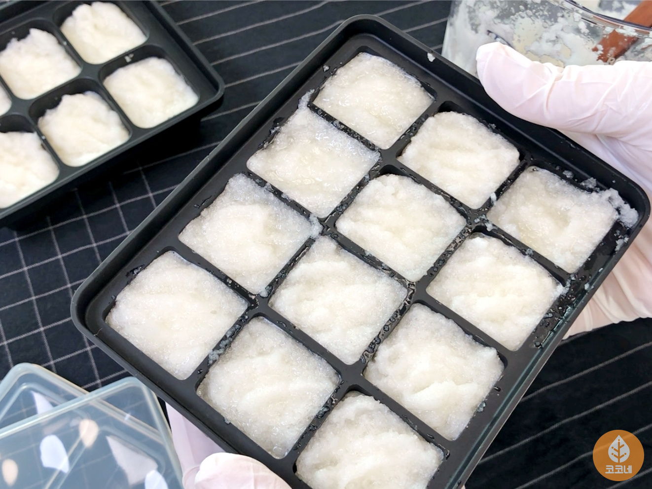 이제 얼음틀에 담아서 무큐브를 만들건데요.