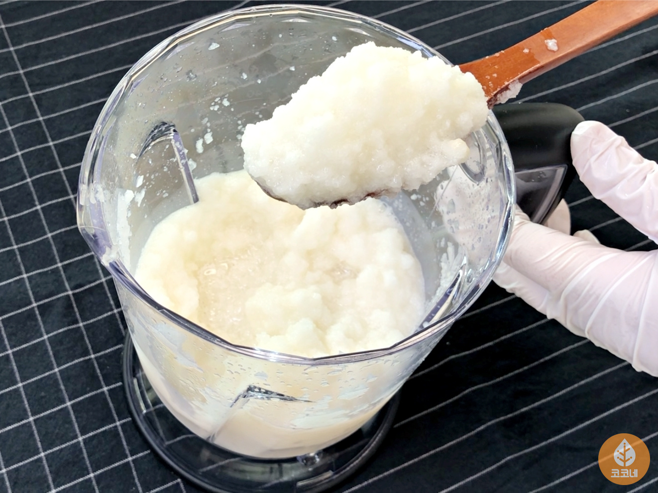물을 약간 넣으면 무가 더 곱게 갈리거든요.