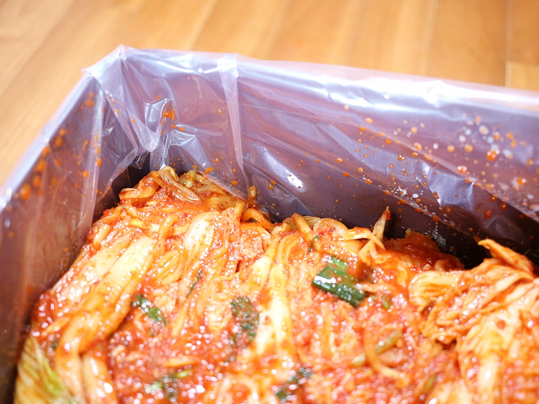 김치통 안에 식품용 비닐을 끼워