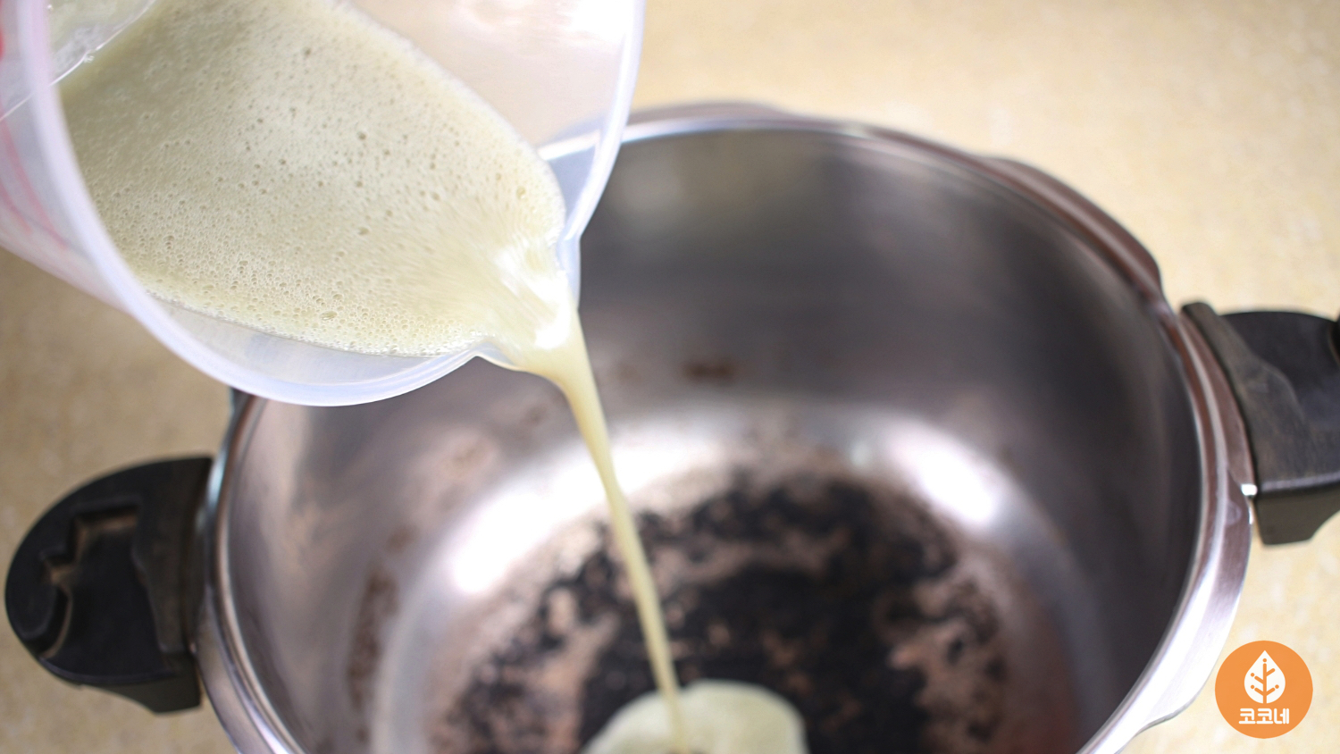 탄 냄비에 부어주세요.