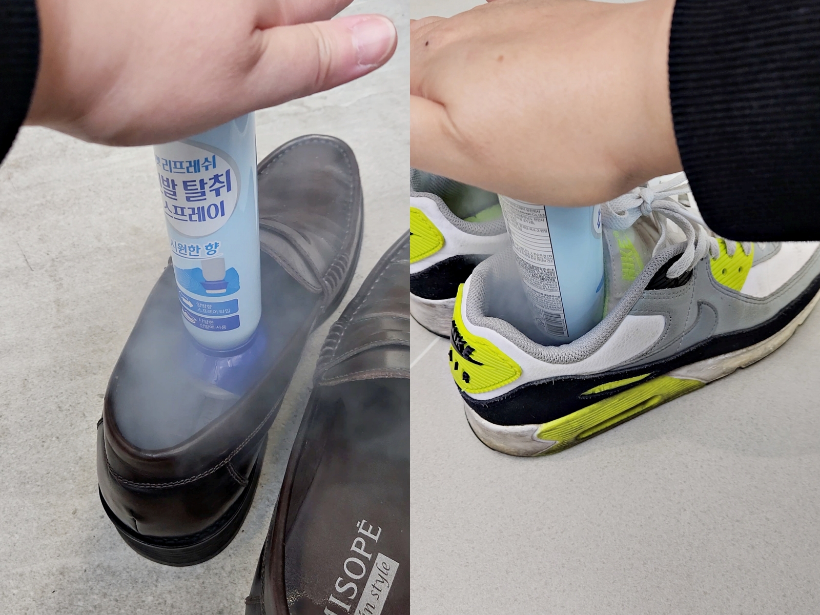 간편하게 뿌려서 사용하는 신발 탈취 스프레이예요.